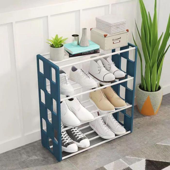 Tempat penyimpanan sepatu bahan tebal/Rak sepatu sandal minimalis susun besi - Hitam Tanpa Buble