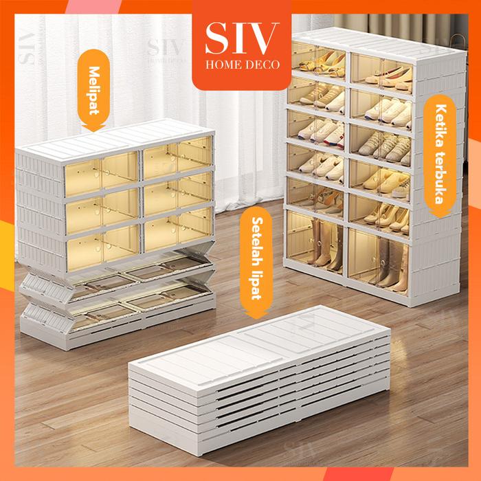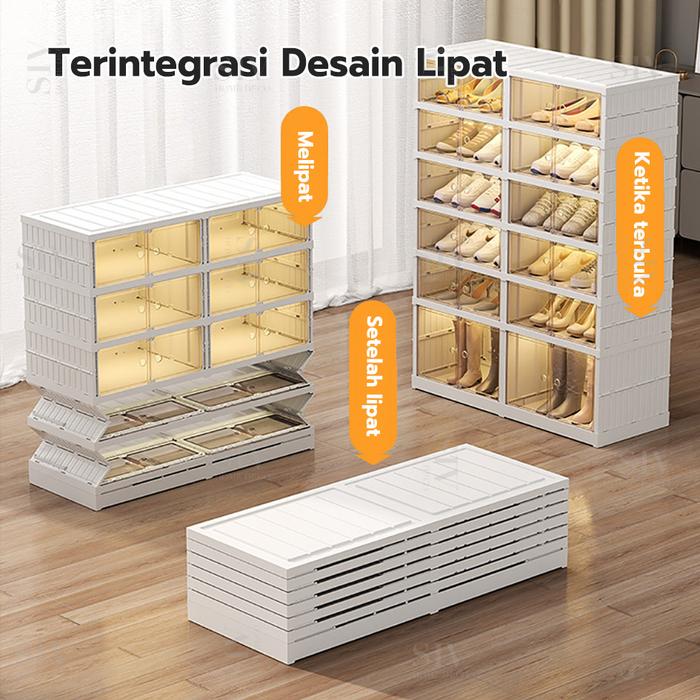 【 Tidak Diperlukan Instalasi】SIV Rak Sepatu Lipat Kotak Sepatu Lipat Kotak Sepatu Transparan - 4 tingkat