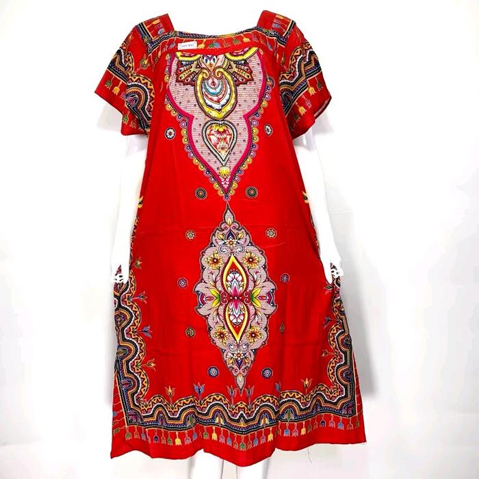 DASTER SIKAK KANCING BATIK SRIGADING LD 120 MOTIF BUNGA GARPU Daun - merah