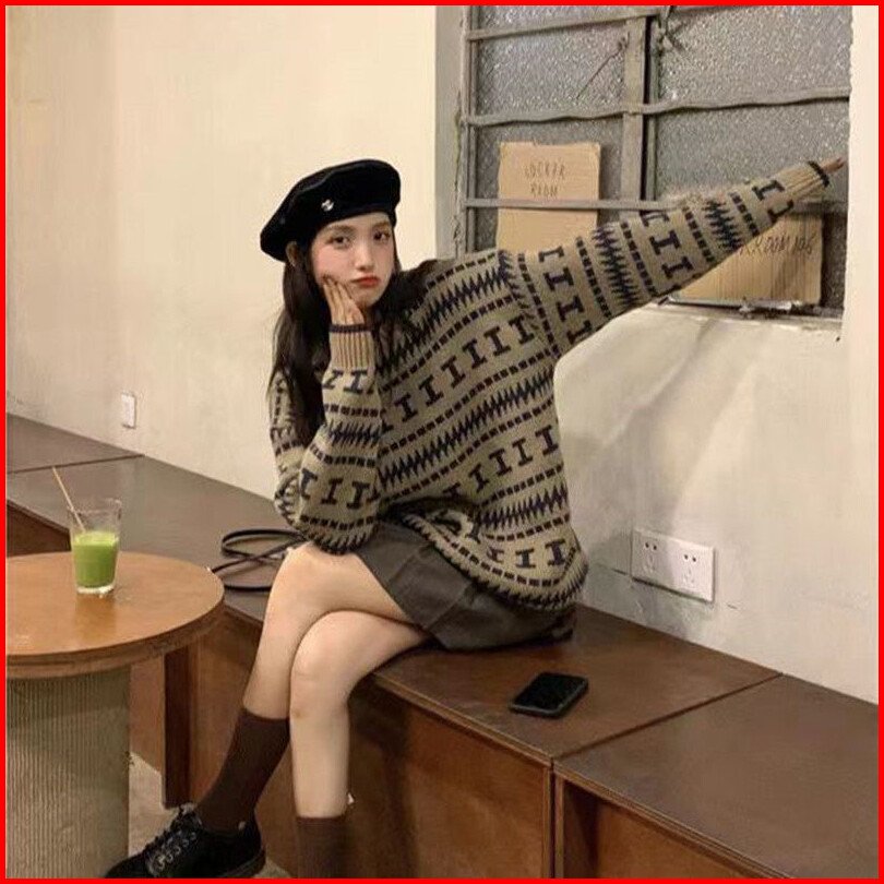 Sweater Rajut Nomi Oversize Leher Bulat Wanita -ngrosid