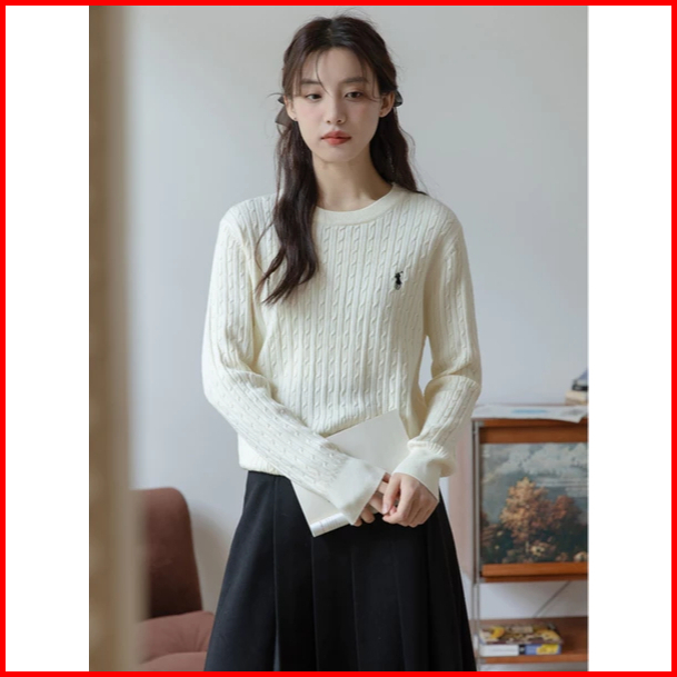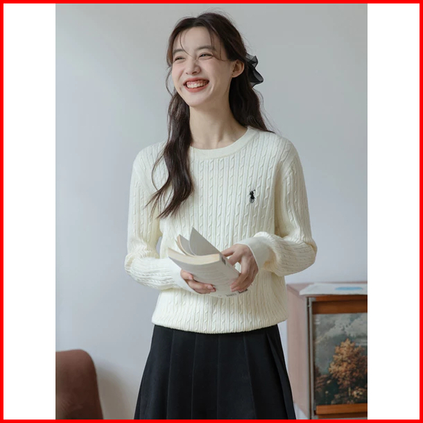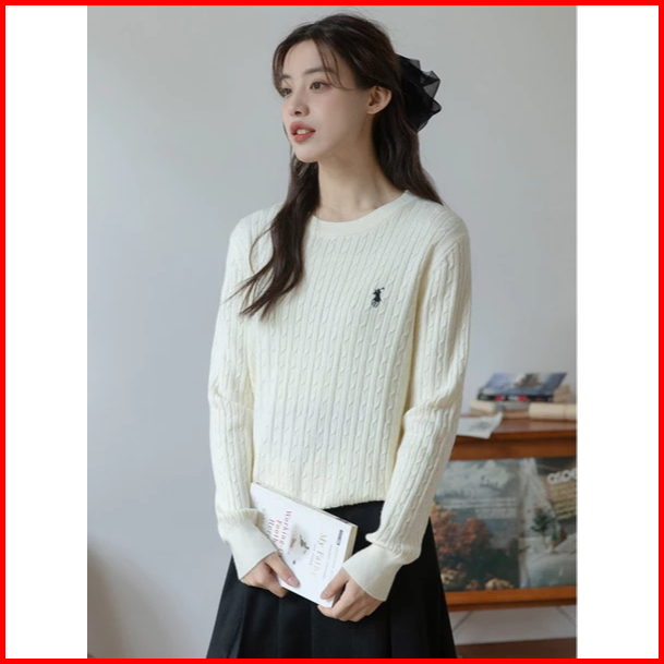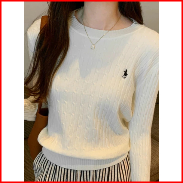 Sweater Rajut Wanita Bordir Olop Kerah Bulat Lengan Panjang Bahan Halus Dan Tebal