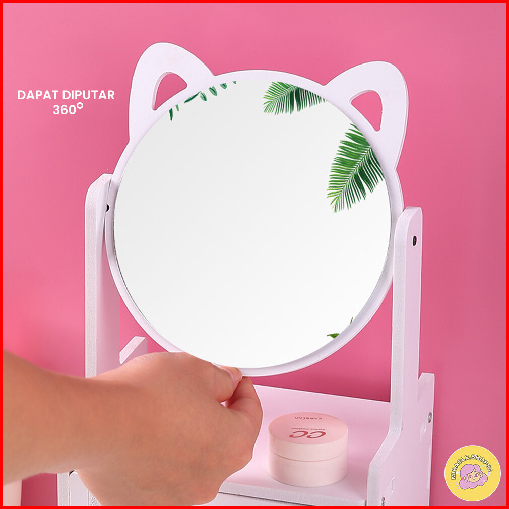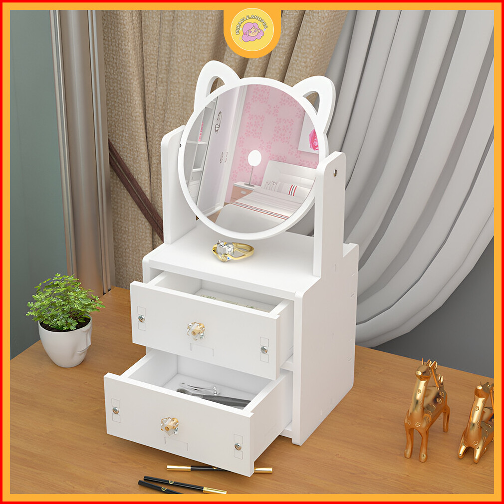 Ms Tempat Kosmetik Cermin Dengan 2 Laci Kotak Penyimpanan Cermin Laci