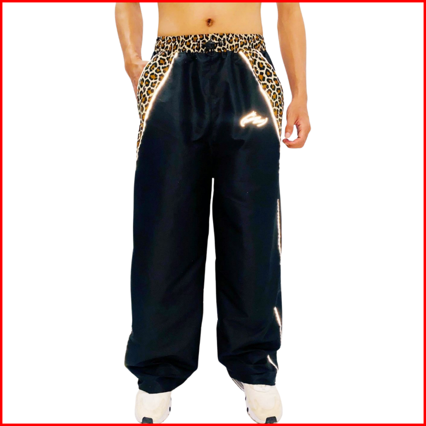 Y2k Baggy Pants Motif Leopard Celana List Reflective