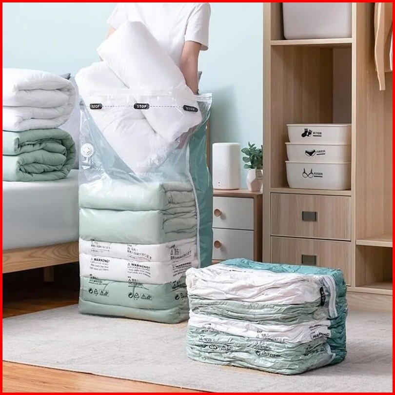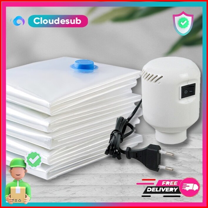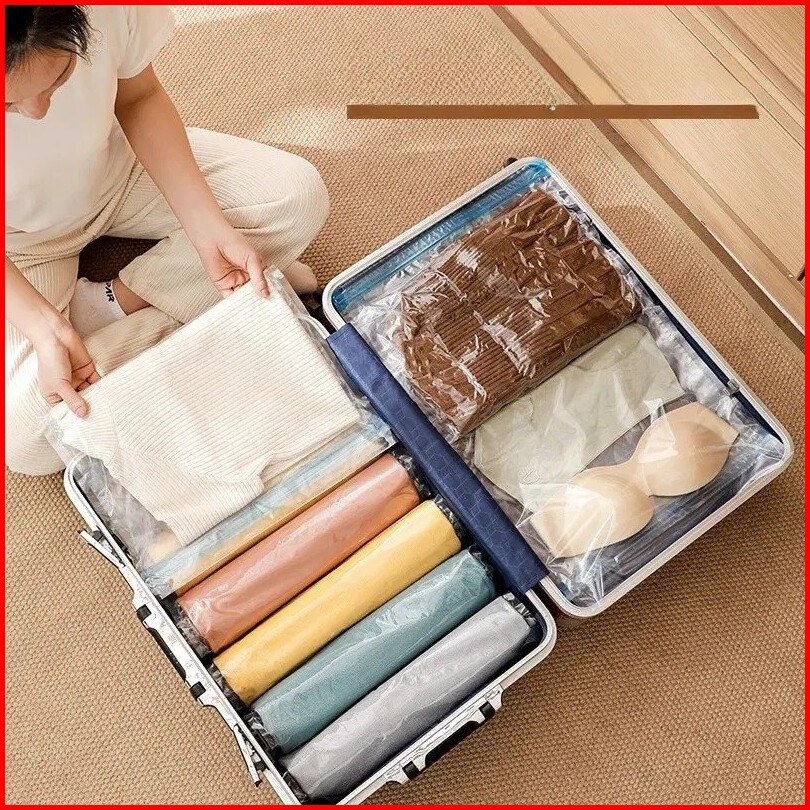 Set Kantong Plastik Vacum Vakum Vacuum Bag Baju Pakaian Travel Set Pump Pompa Elektrik
