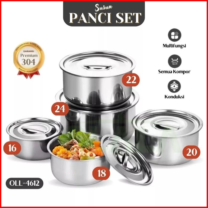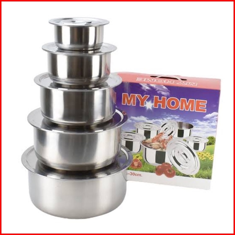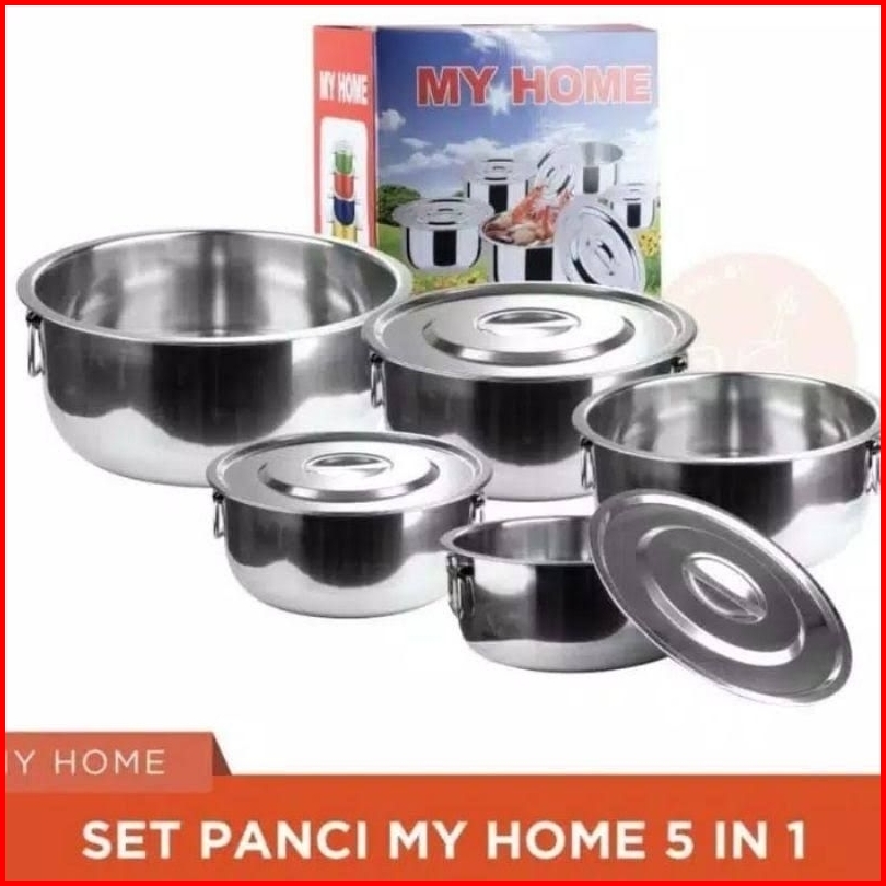 Panci Stainlees Beranak 5in1 Tutup My Home Stainlees Steel Beranak 5 Susun My Home Alat Masak Pancii