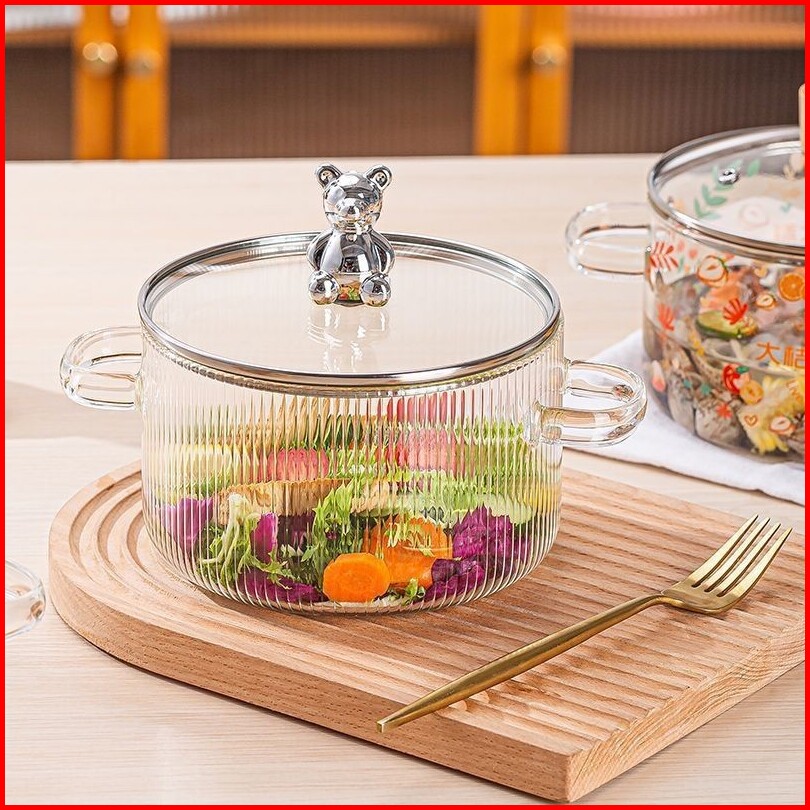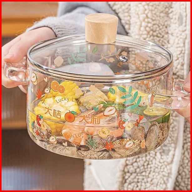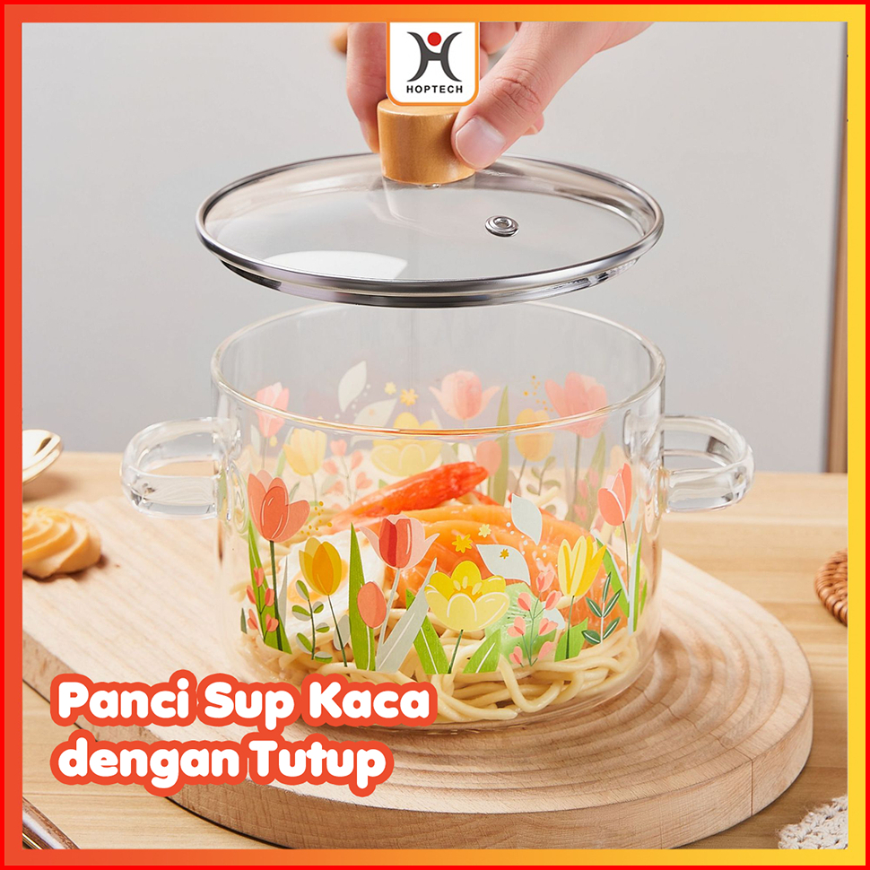 Hoptech - Panci Sup Kaca Transparan Dengan Tutup Cocok Untuk Sup Sayur Dan Masakan Rumahan