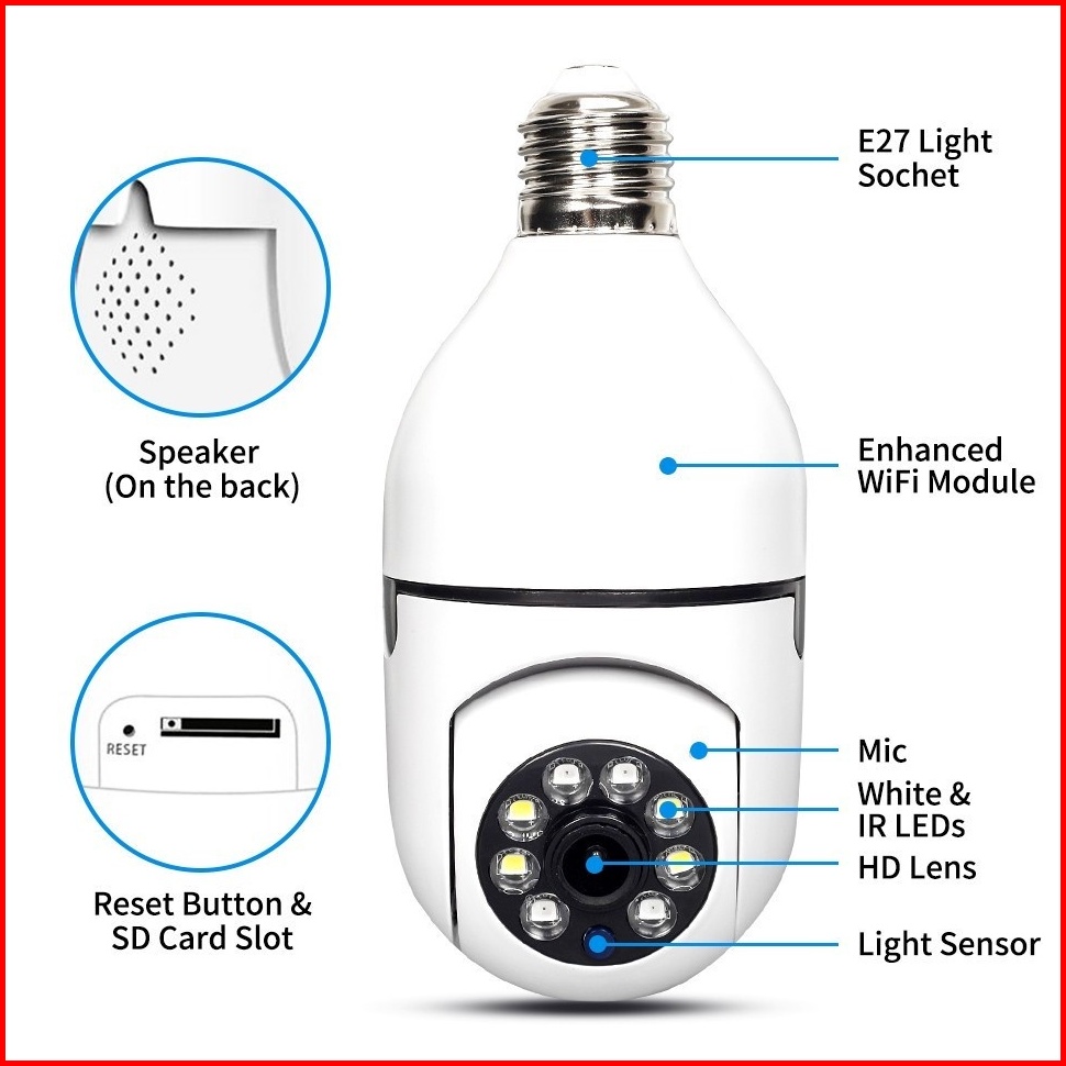 V380 Pro Bulb Wireless Surveillance Bubble Camera Wifi 360 Degree Night Vision Automatic Tracking Home Panoramic Video S
