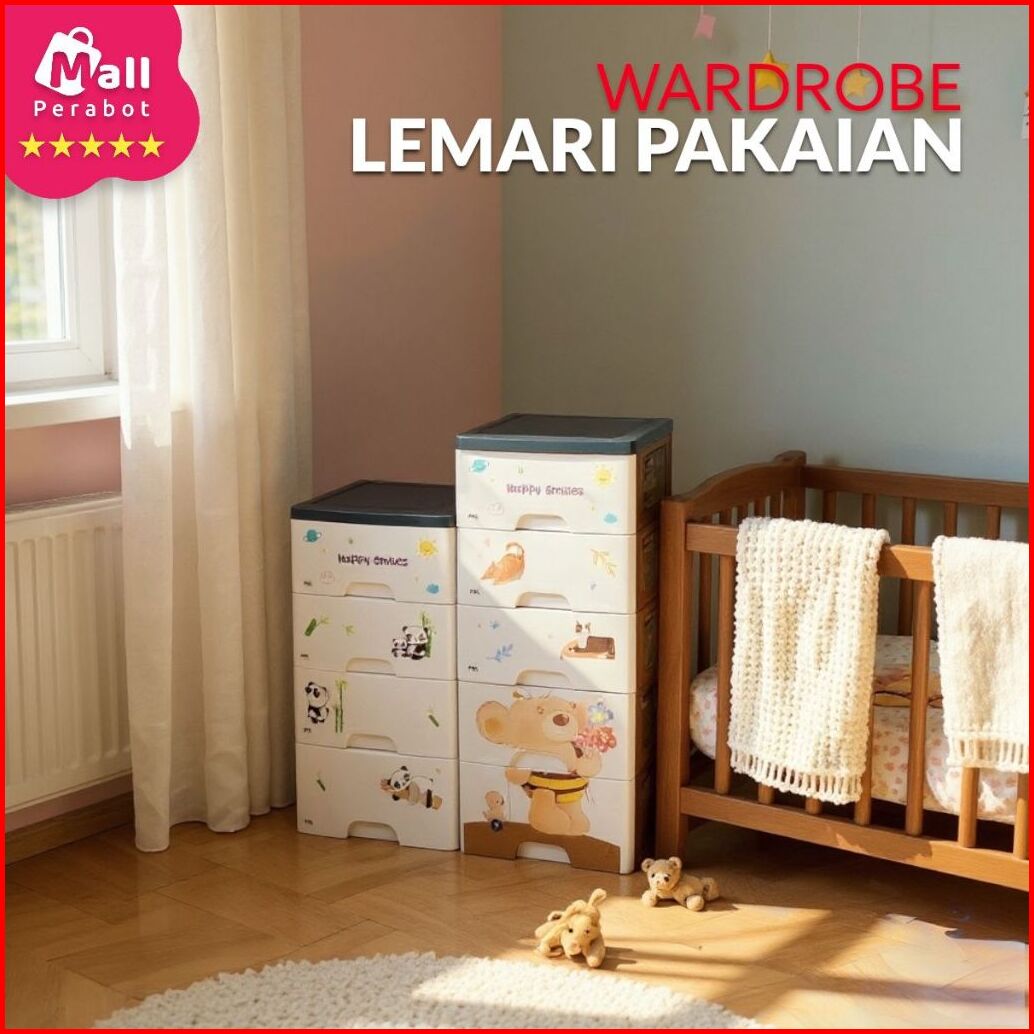 Mall Perabot Lokal Lemari Pakaian Laci Susun Wardrobe Plastik Persegi Kabinet Drawer Storage Rak Loker Baju Tingkat Jumb