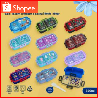 Kotak Makan Tempatmakan Lunchbox Duo Mini Lunchbox Sekat 2 Free Sendok Bpa Free 1148