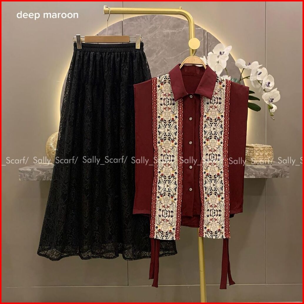 Sally Scarf Parisia Set Rok Outer Setelan Vest Polos Motif Rok Lace Brukat