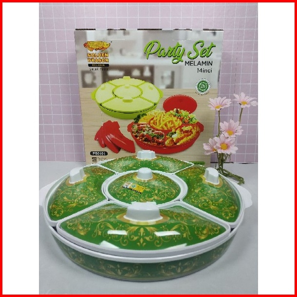 Partyset Motif 14inc Melamin Golden Dragon Melamin Ps0101mf - Prasmanan Melamin - Wadah Saji Bulat