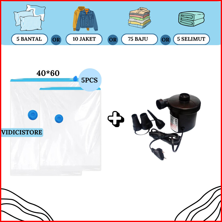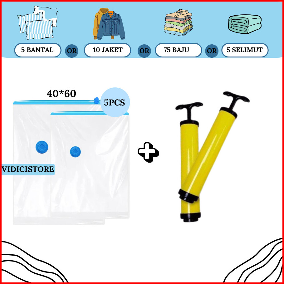 Vacum Bag Pakaian Set Paket Vacum Isi 5 Pcs Plastik Vacum Bag Plastik Baju Travel Vacum Transparan