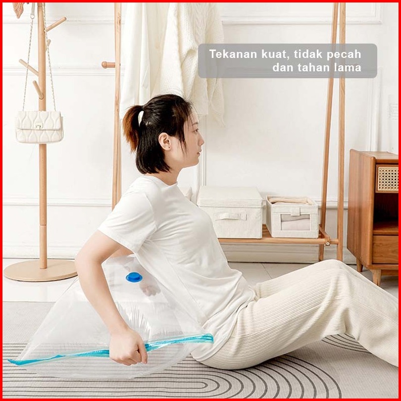 U-living Set 4pcs Plastik Vacuum Polos Biru Dan 1pcs Pompa Elektrik Vakum Kompresi Pakaian Travel