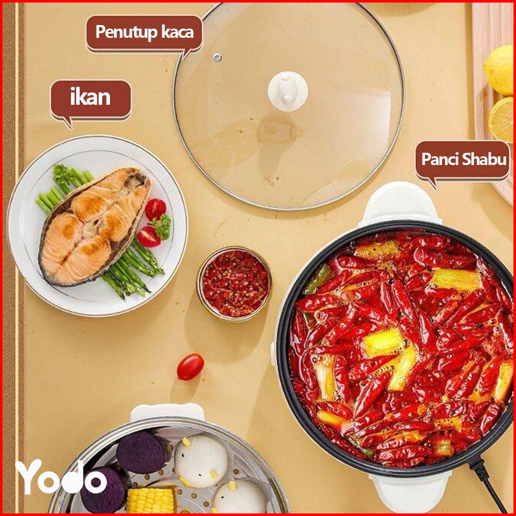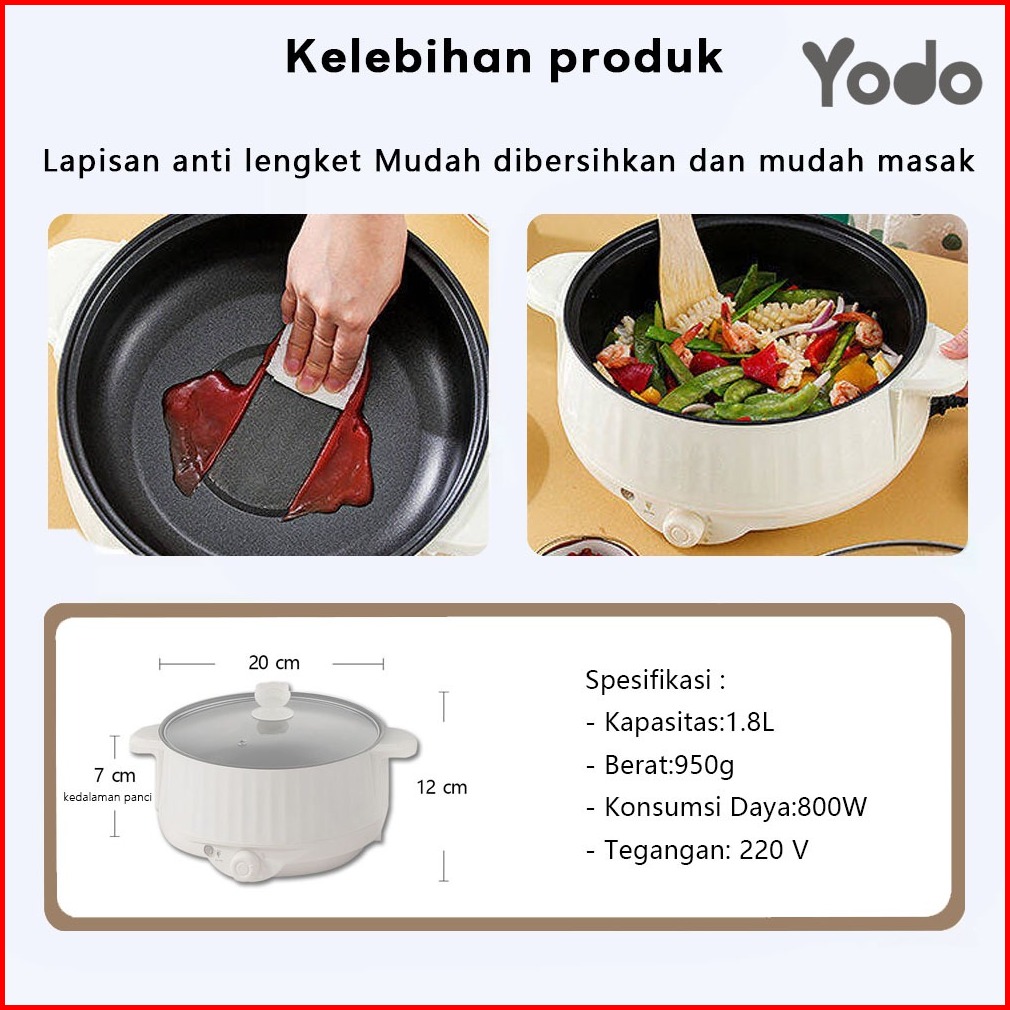 Panci Listrik Anti Lengket 1.8l Terlaris 3 Fungsi Goreng Tumis Rebus - Desain Imut 2 Level Daya