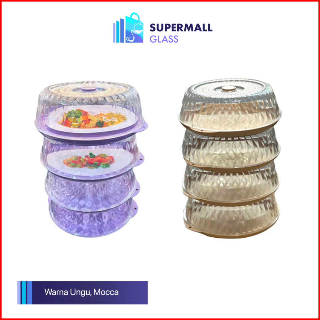 Supermall Glass Tudung Saji Makanan 3 - 4 Susun Kristal Anti Pecah Varian Baru V2 Rak Untuk Menyimpan Makanan Food Pack