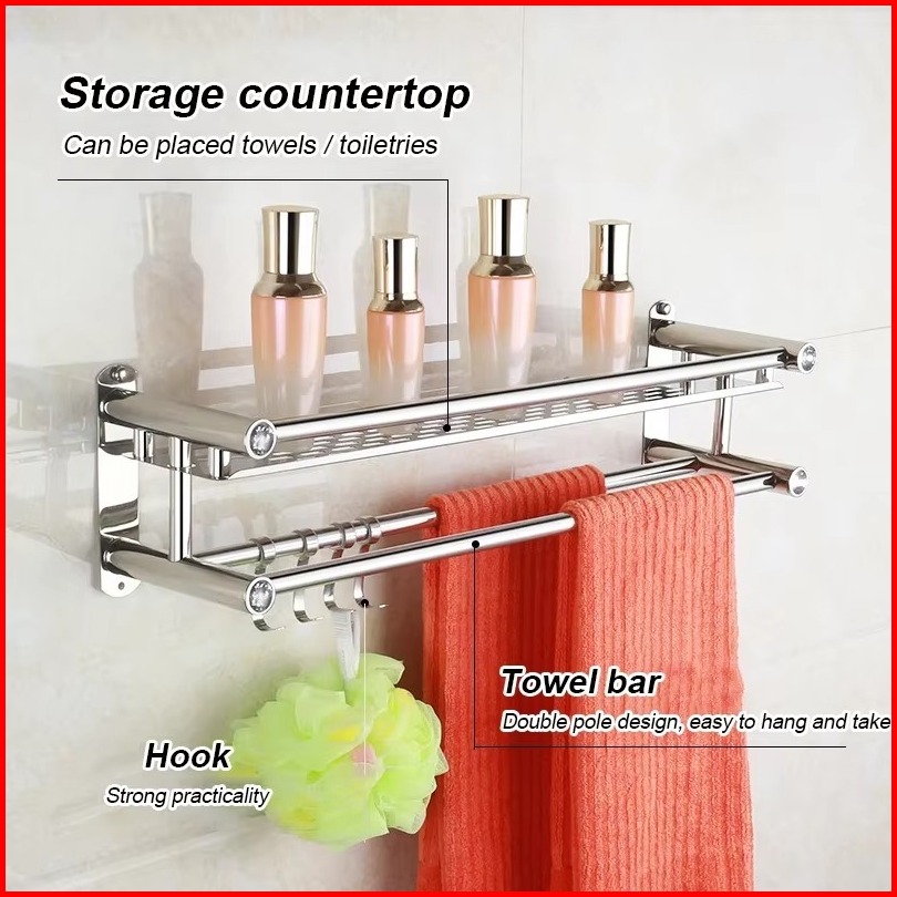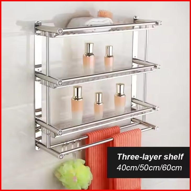 Rak Sabun 2 3 4 Susun Gantungan Handuk Tingkat Rak Gantungan Kamar Mandi Stainless Tanpa Mesin Bor