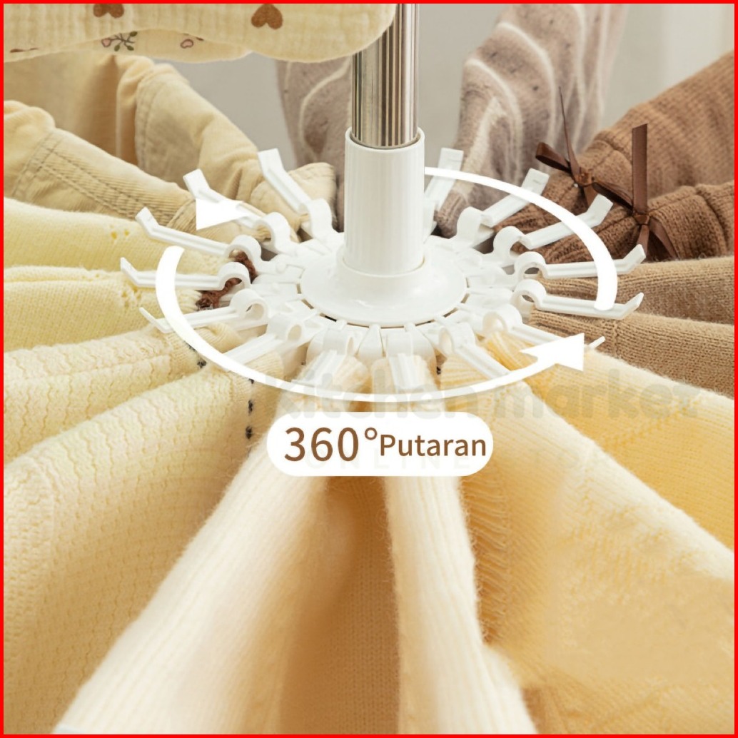 Km Jemuran Menara Stainless Steel 2 Tingkat Jemuran Menara Baju 10 Jari Jari