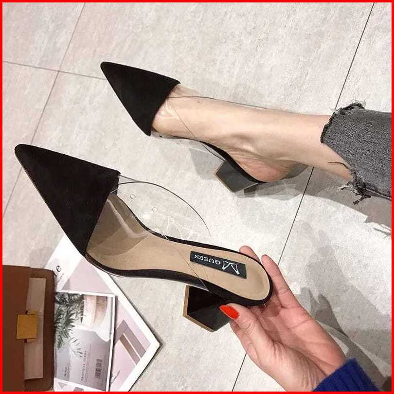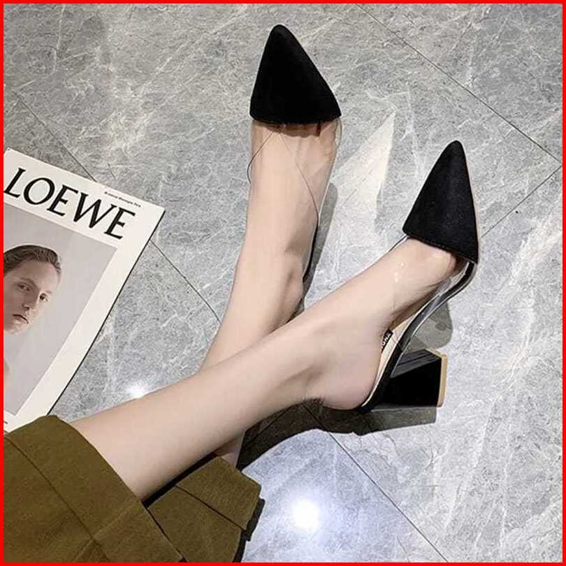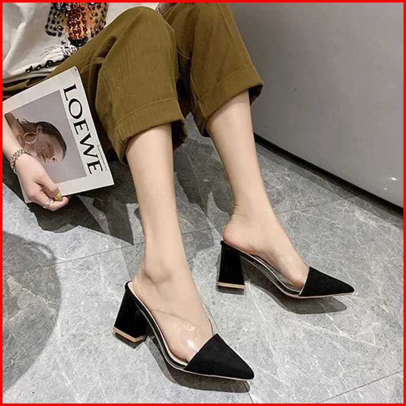 A06 Sandal Wanita Hak Tahu Mika Transparan Lancip