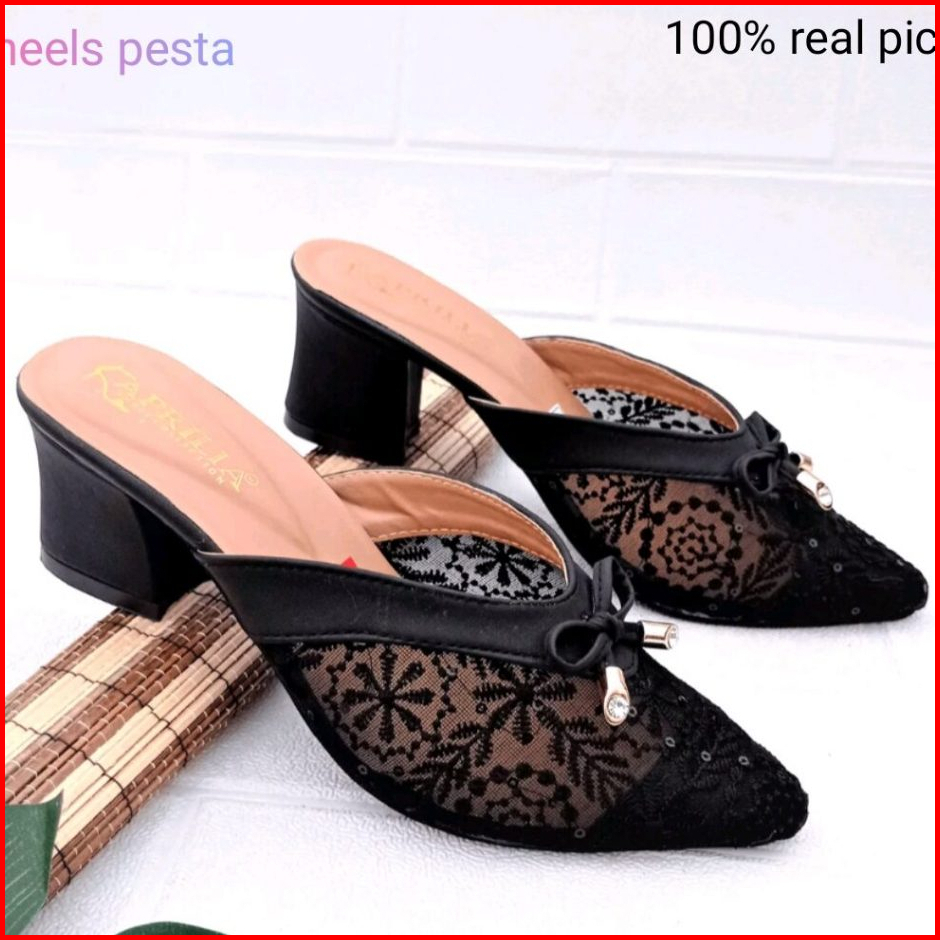 Juragan Online - Sandal Pesta Wanita Pump Heels Aprilia - Intan Sendal Brukat Jala Terlarisss
