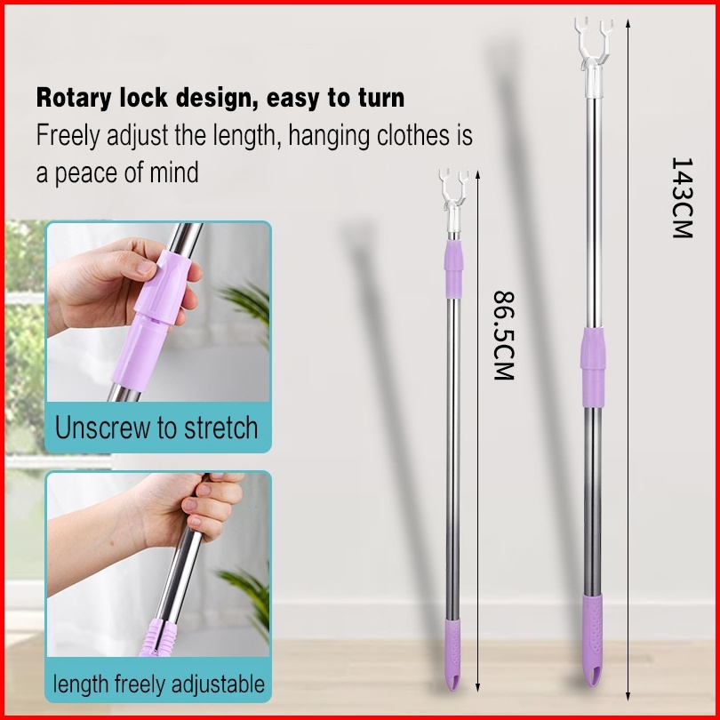 Bisa Dipanjangintongkat Pengait Jemuran Tongkat Jemuran Pengait Baju Tongkat Hanger Stainless