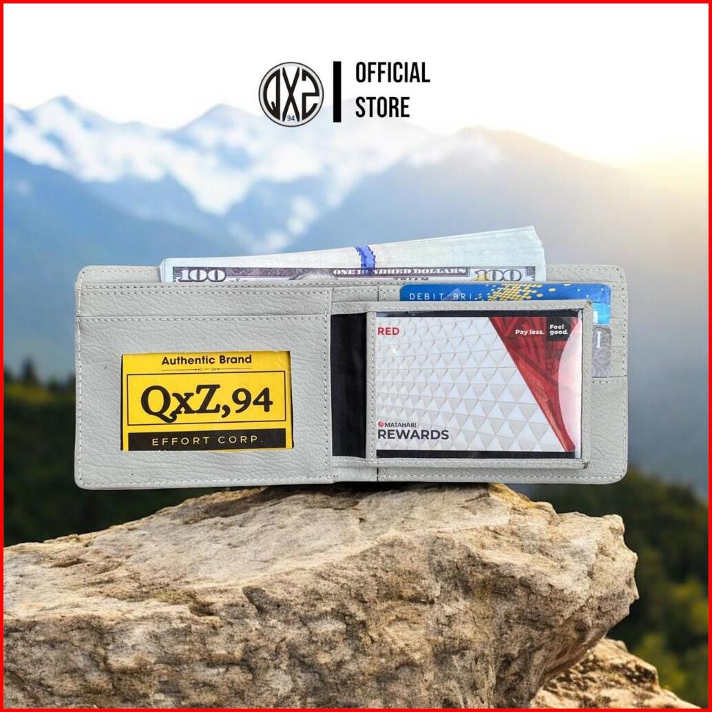 Qxz94 Dompet Pria Kulit Sintetis Lipat 3 Pendek Polos Premium Slot Kartu Uang Abu-abu Simpel Elegan