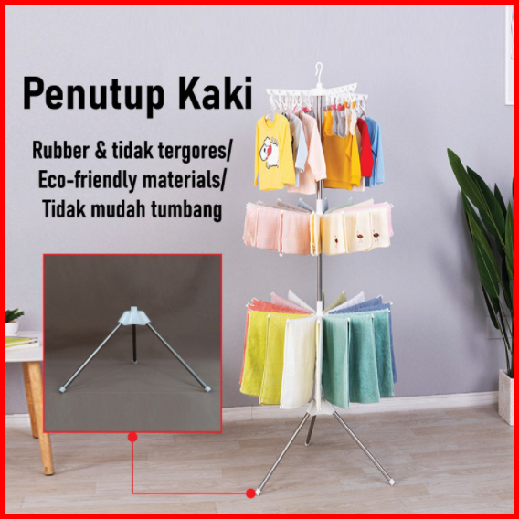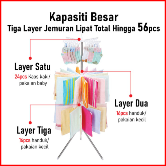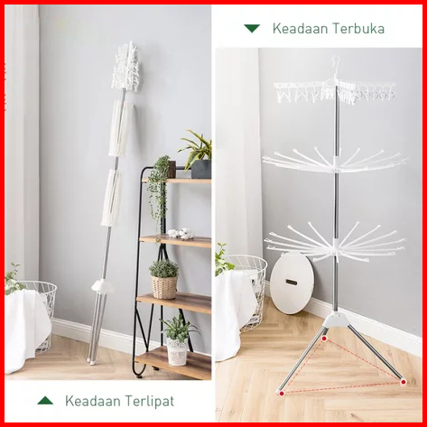 Homeluxe Jemuran Menara 3 Tingkat 16 Jari-jari 24 Jepitan Gantungan Baju Jemuran Lipat Stand Hanger
