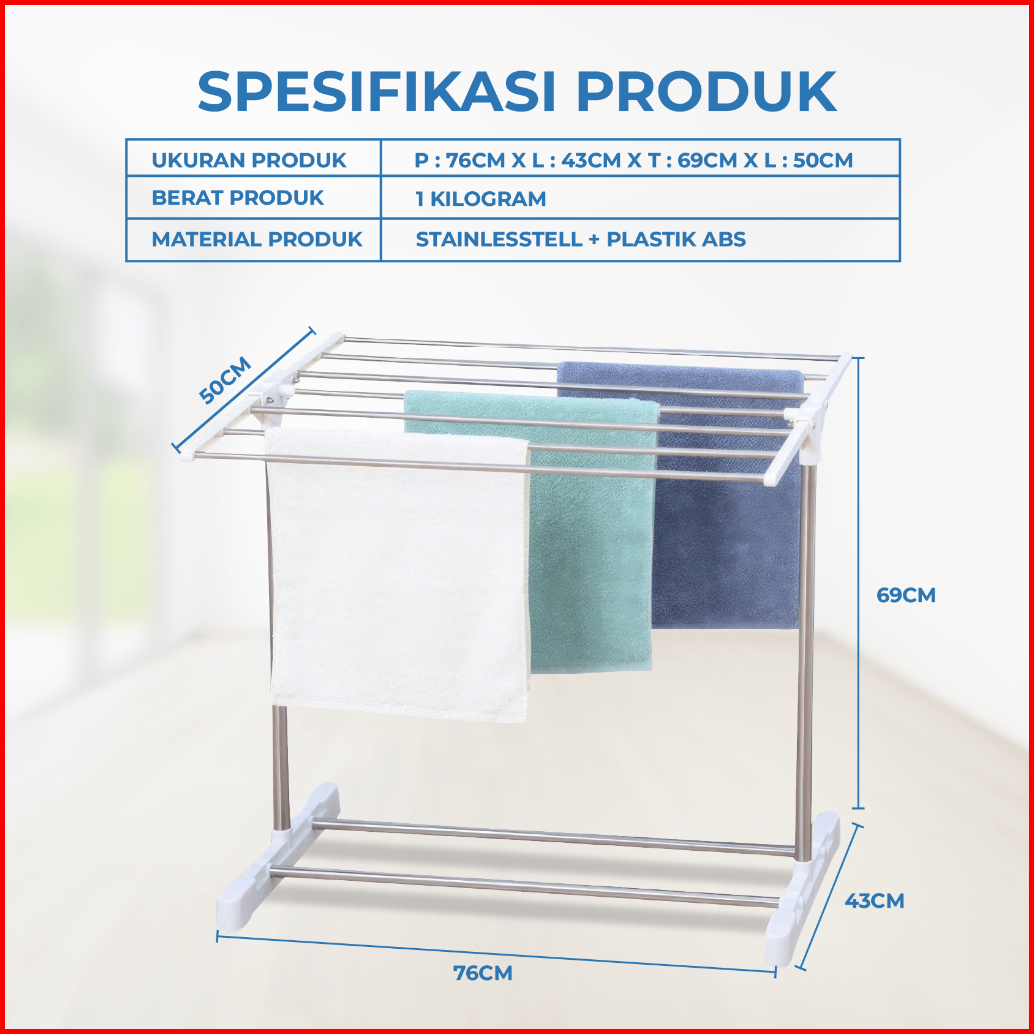 Dreamhome Rak Jemuran Handuk Lipat Stainles Rak Handuk Jemuran Portable Serbaguna
