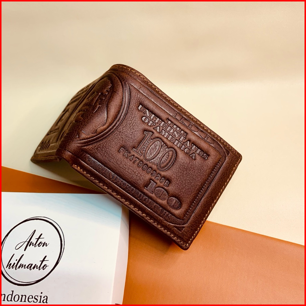 Ahlmn Dompet Kulit Motif Embos Full 100 Dolar Ukuran Mini Untuk Gaya Simple Dompet Dompetkulit