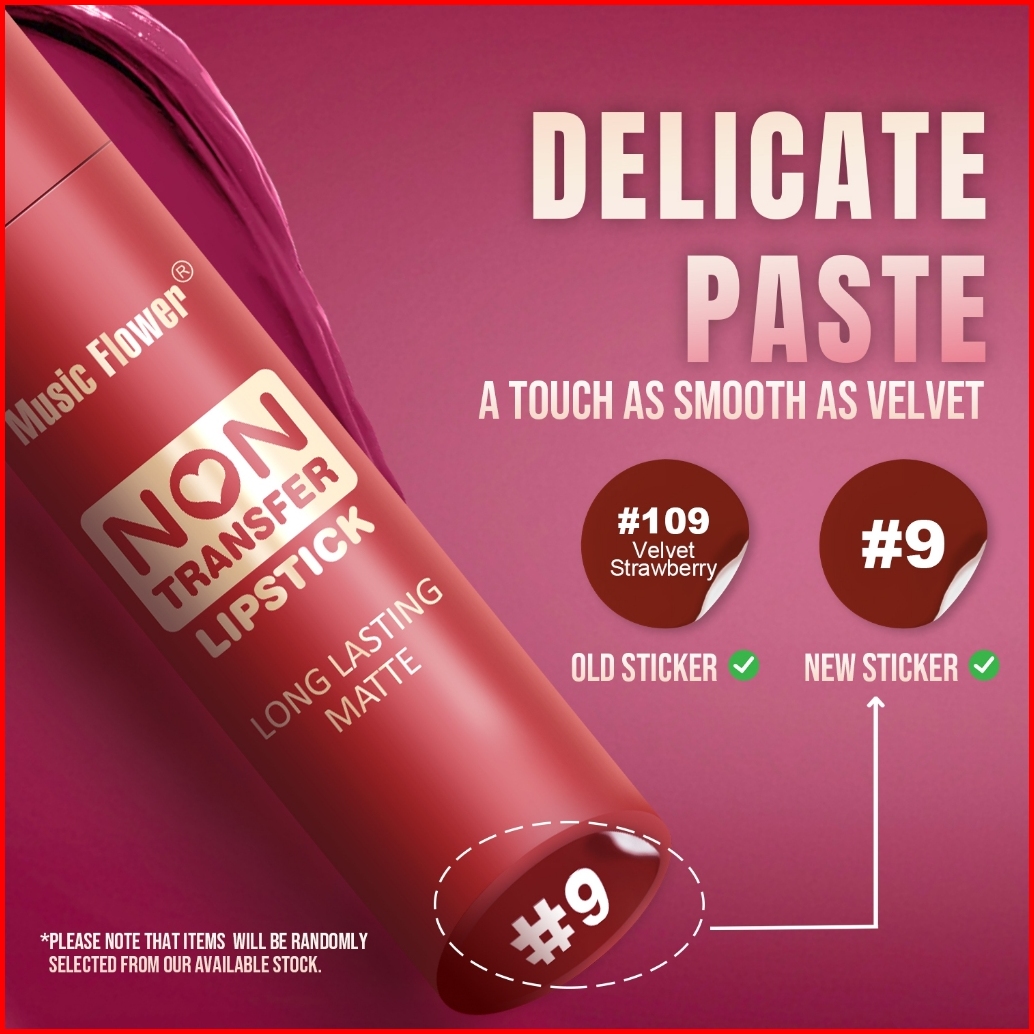 Music Flower Matte Lipstick Silky 24h Long Lasting Transferproof Lip Makeup Transferproof Tahan 24 Jam Ringan Dan Tidak