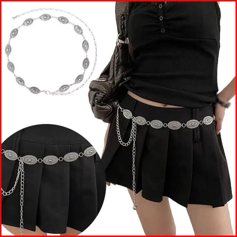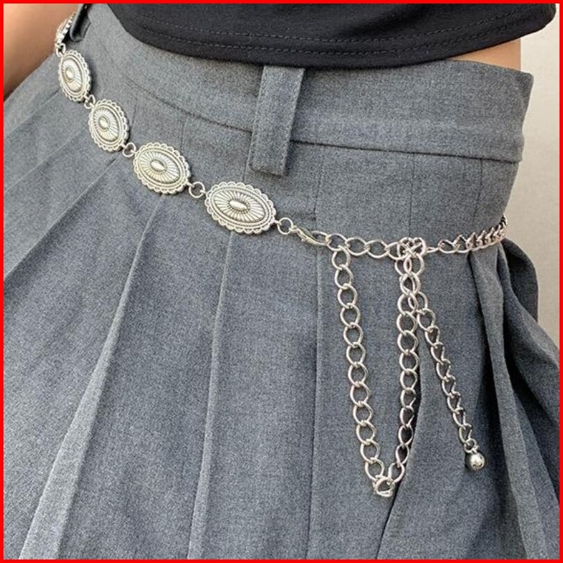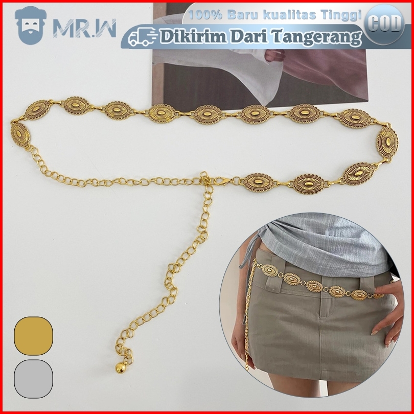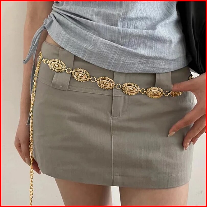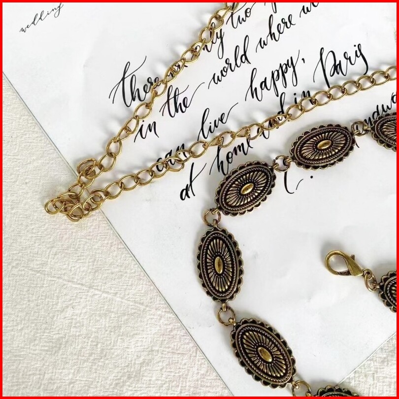 1set Ikat Pinggang Rantai Wanita Fashion Berukir Logam Belt Wanita Rantai Retro Sabuk Rantai Wanita