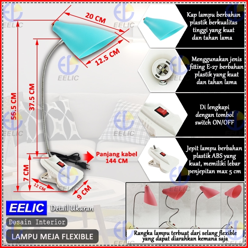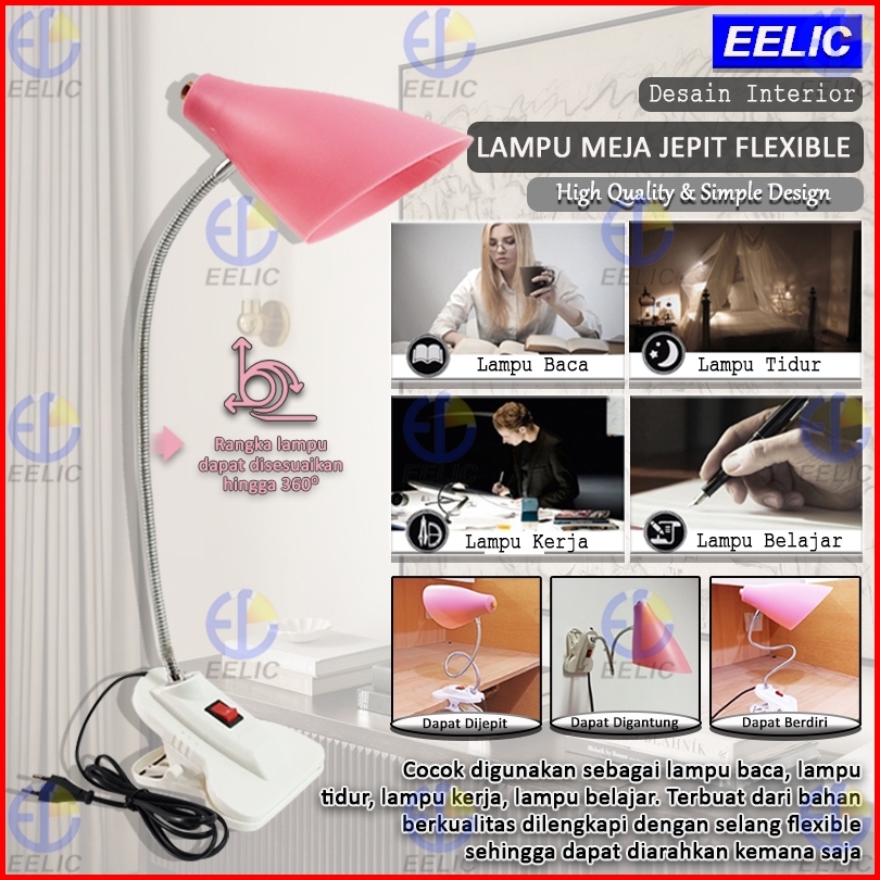 Eelic Elc-j055 Lampu Meja Jepit Klasik Desk Lamp Table Rangka Flexible Tombol Switch On Off Desain Interior