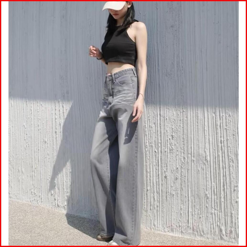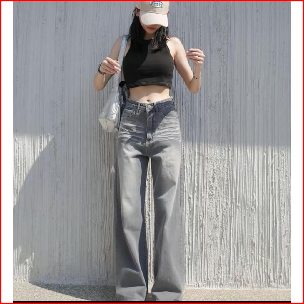 Highwaist Baggy Jeans Loose Oversize Retro Wishker-celana Jeans Korean Baggy Straight
