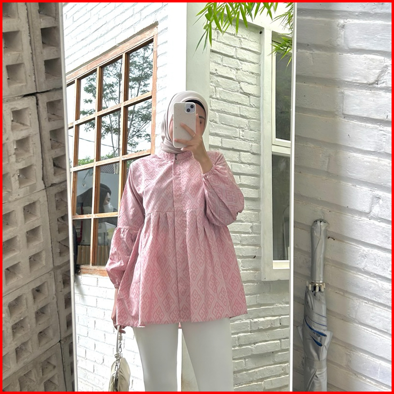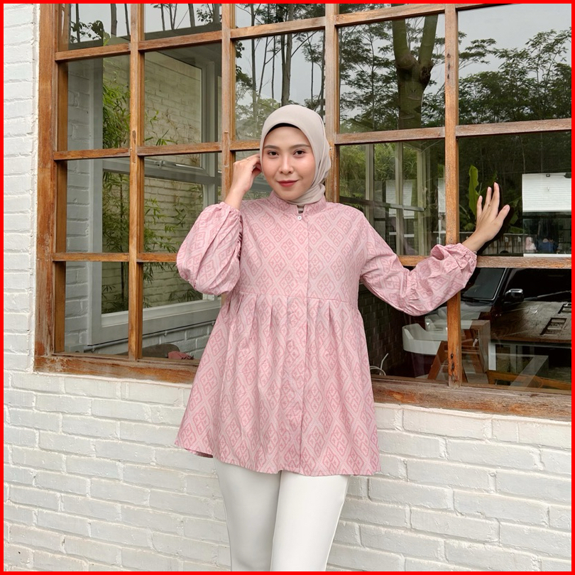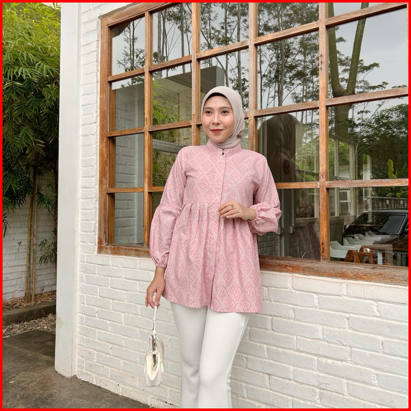 Blouse Batik Kerja Safira Warna Pink Lengan Panjang