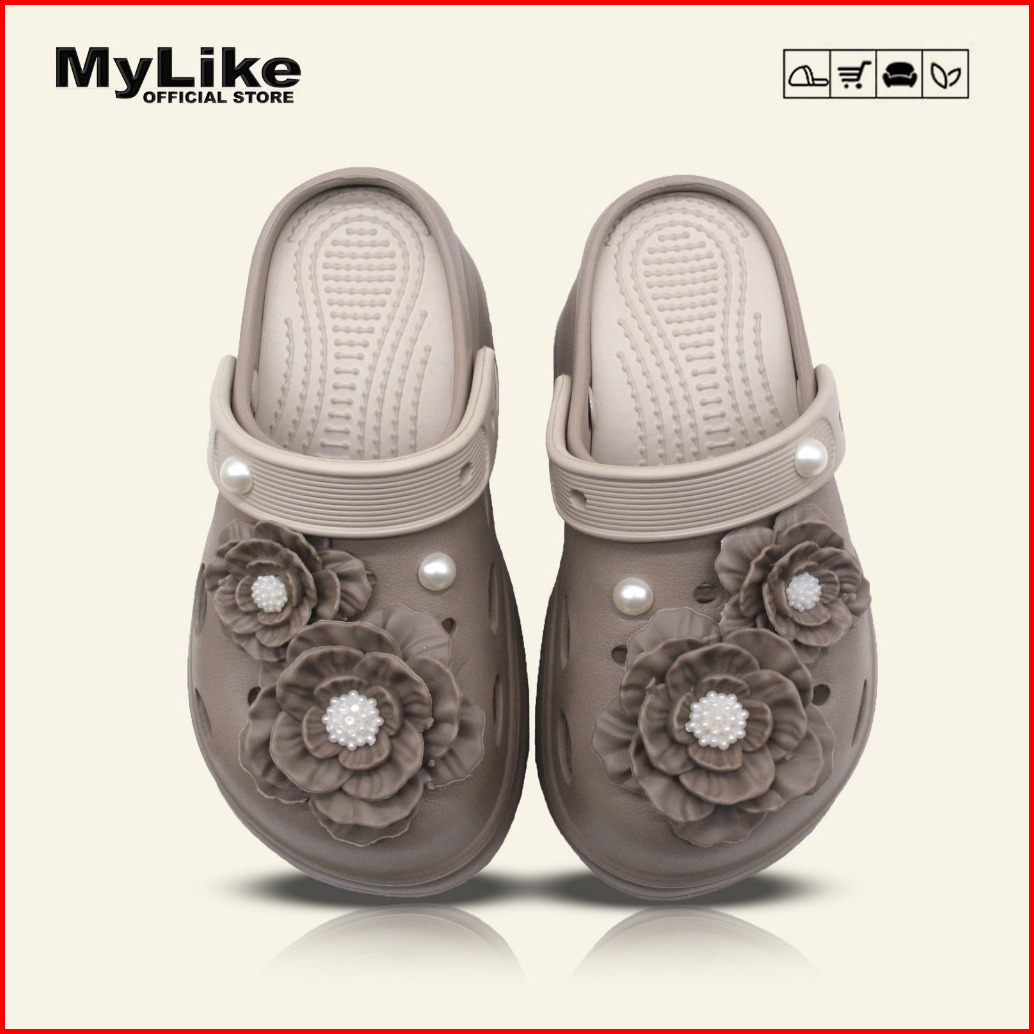 Mylike-sandal Baim Clog Wedges Wanita Motif Bunga Terbaru