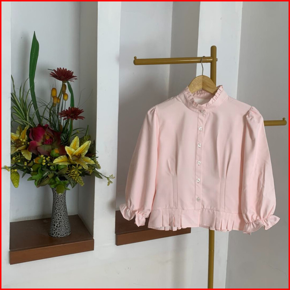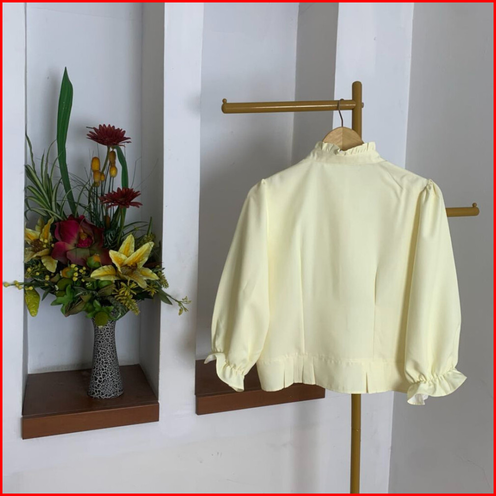 Atasan Wanita Blouse Dengan Kerah Rempel Dan Lengan Balon Baju Lengan Panjang Kasual Pakaian Wanita Modis Fashion Wanita