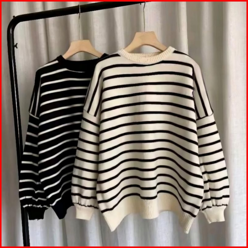 Bayoneta Sweater Knit Rajut Stripe Wanita Style Korean Baju Atasan Rajut Wanita Terbaru