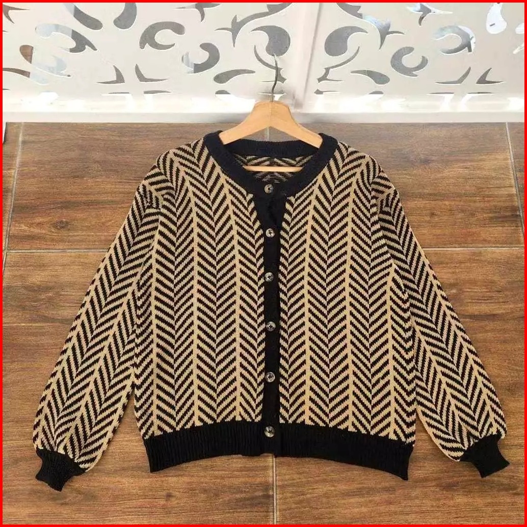 Kardigan Wanita Oversize Bahan Rajut Tebal Premium - Sofya Zigzag Cardy