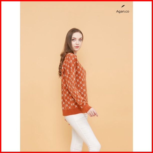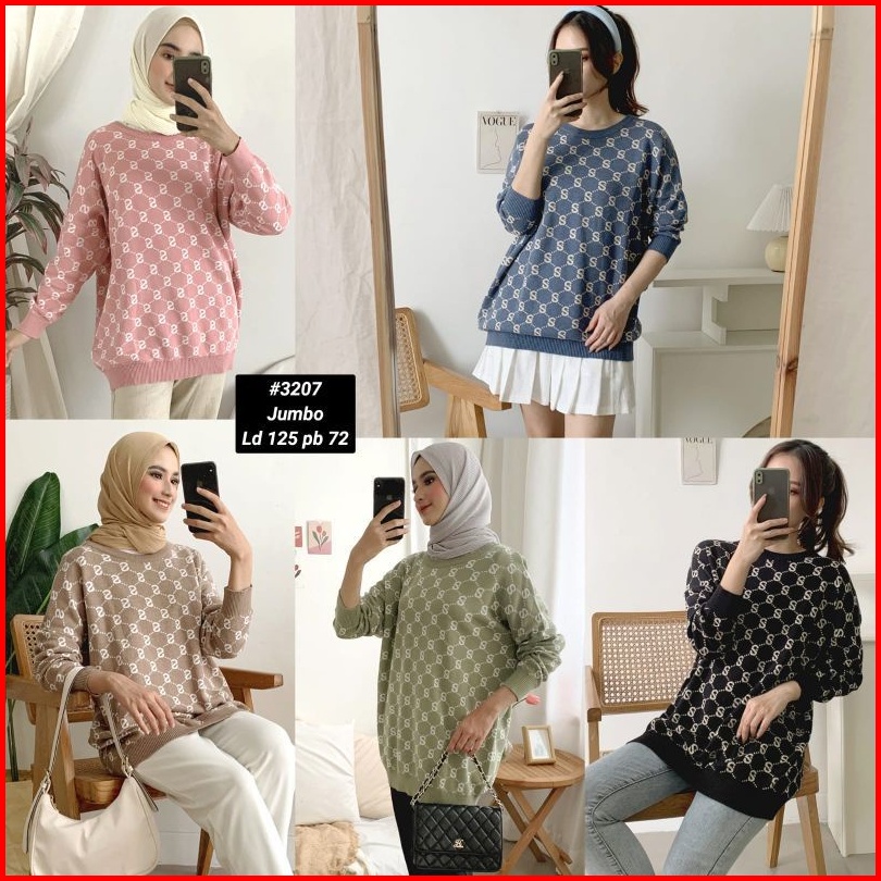 Atasan Wanita Motif Monogram - Ready Stock Best Seller - Top Knit Reguler