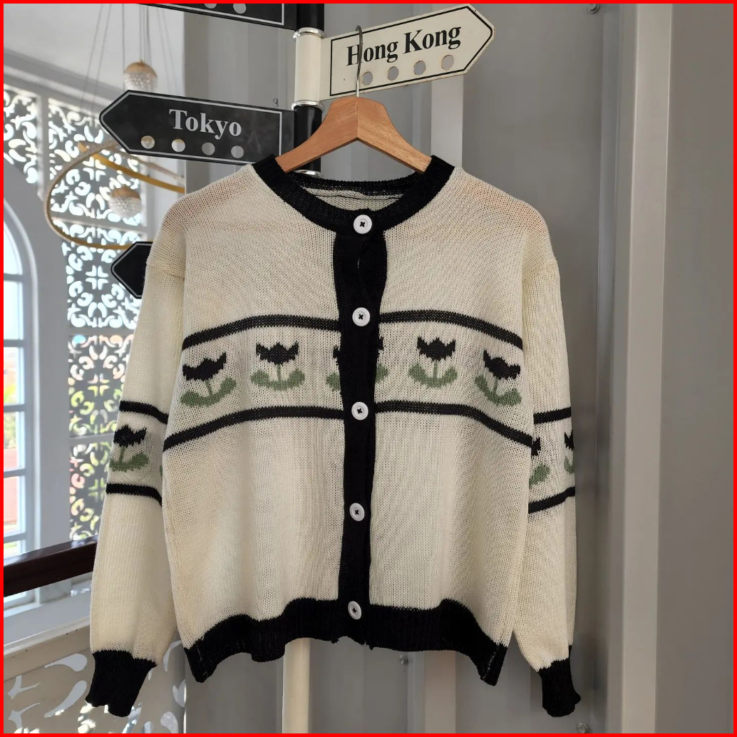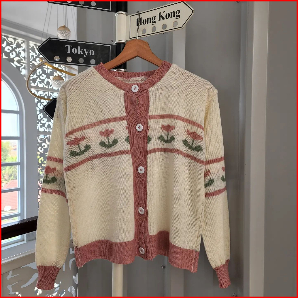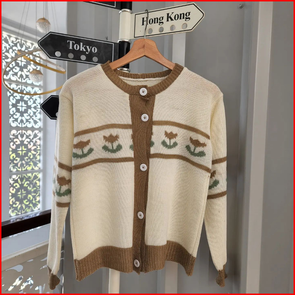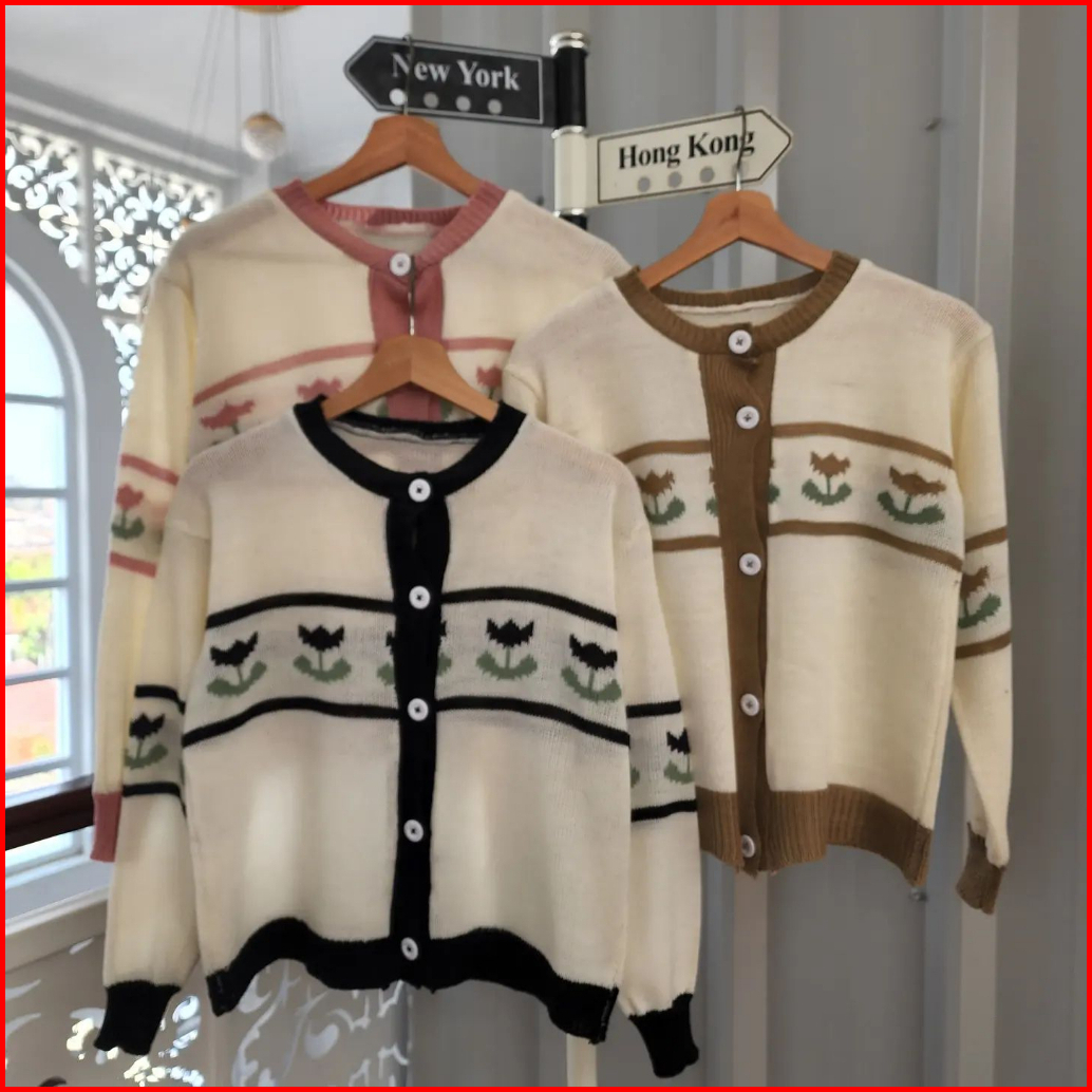 Zyo Realpict Outwear Tulip Olive Off-white Outer Rajut Cardigan Wanita Trendy Murah