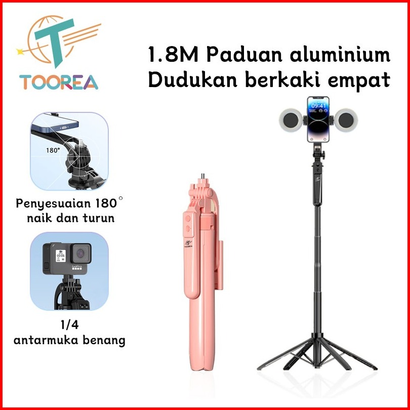 Toorea A17l 180cm Tongsis Tripod Bluetooth Remote Selfie Stick 4 Kaki Tripod Aluminium Tongsis Untuk Hp Kamera Dslr Hand