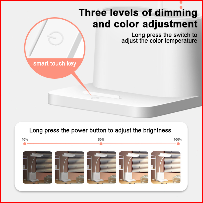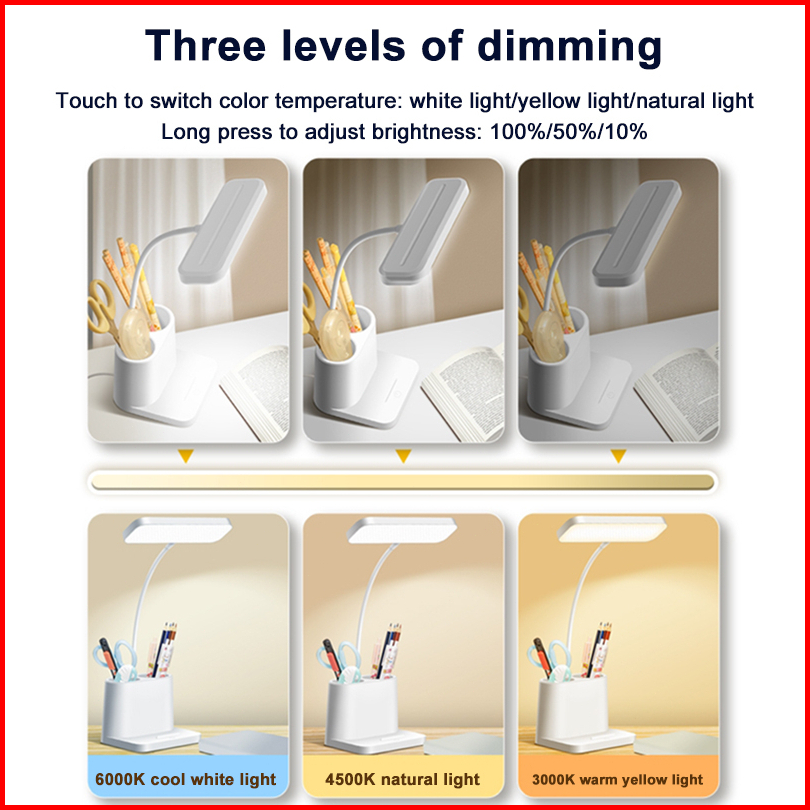 Garansi 10 Tahun Lampu Meja Belajar Aesthetic Led Usb Desk Three Color Adjustable Eye Protection