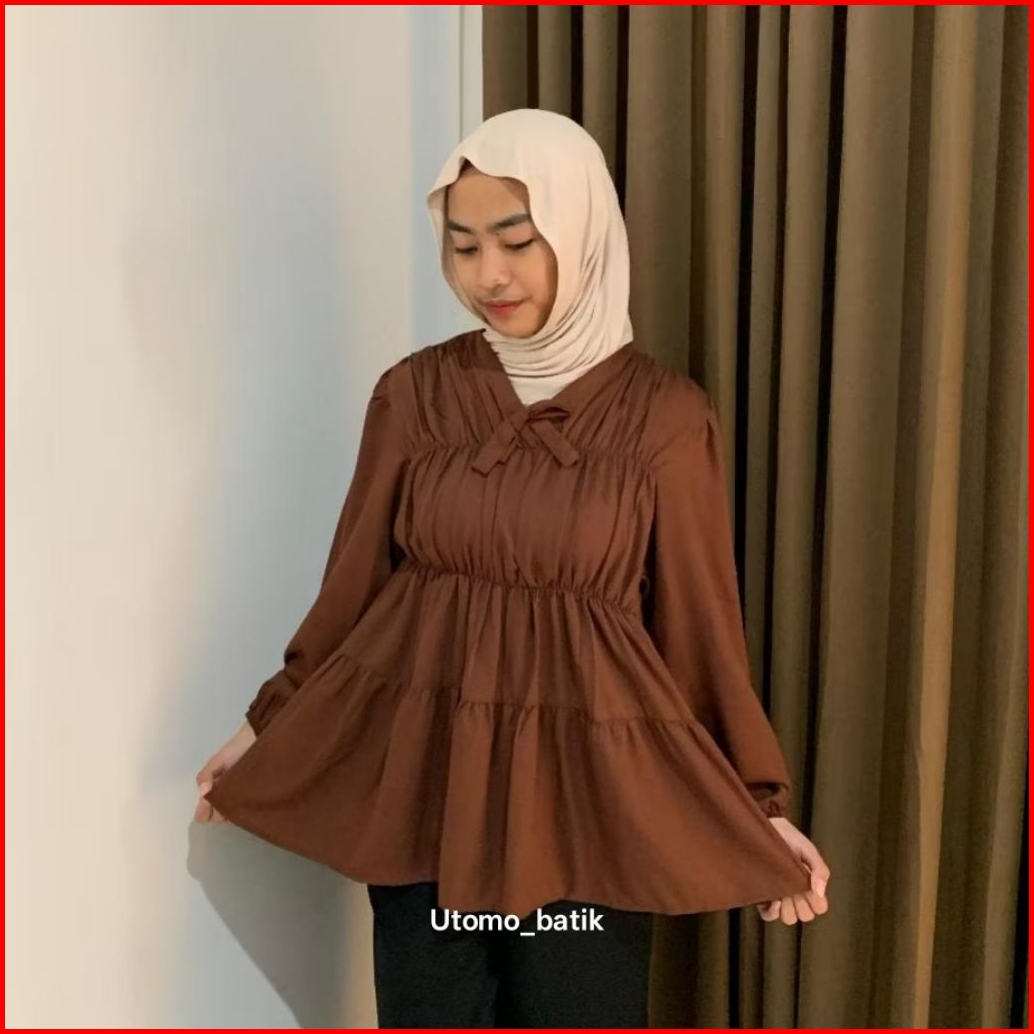 Mireya Blouse Rayon Wanita Kerut Atasan Korean Style Lengan Panjang Kekinian