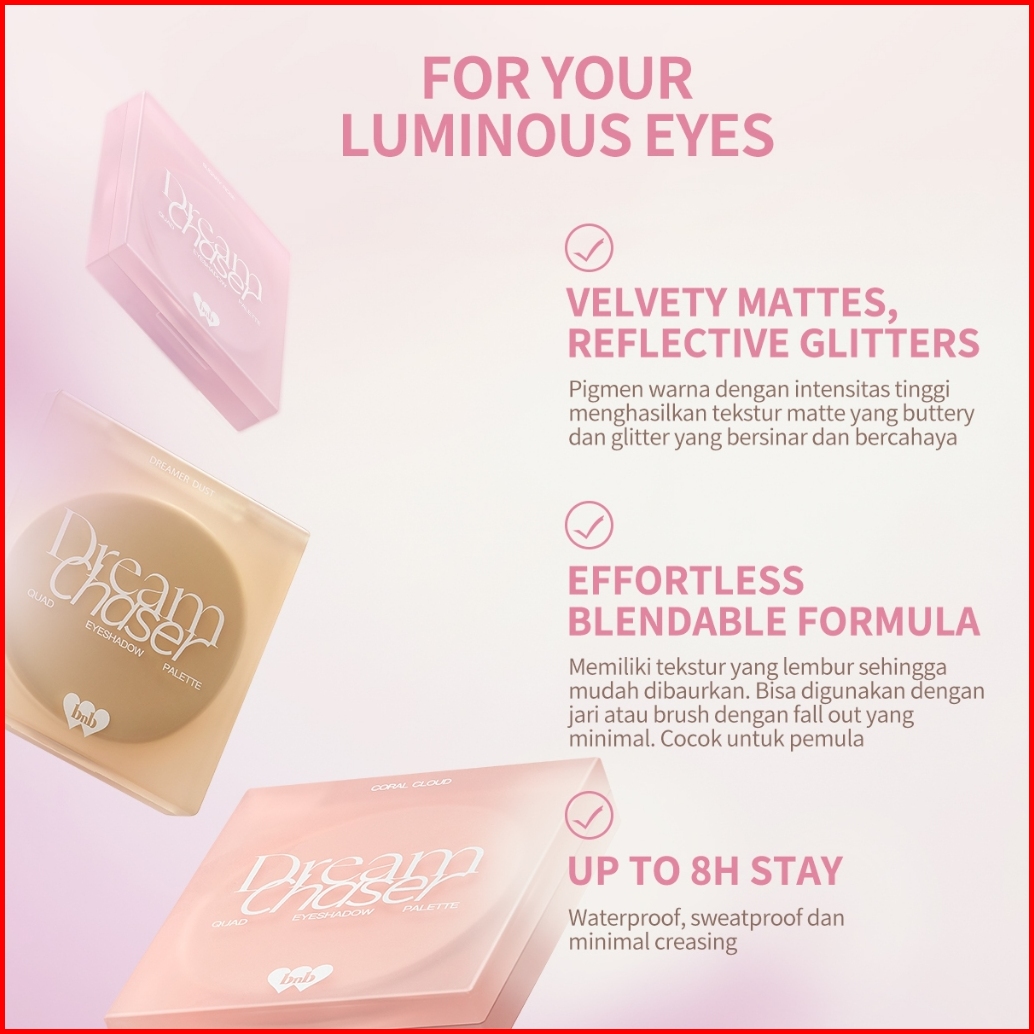 Must Have Bnb Barenbliss Dream Chaser Quad Eyeshadow Palette High Pigmented 4 Warna Palet Eyeshadow Matte Glitter Tahan