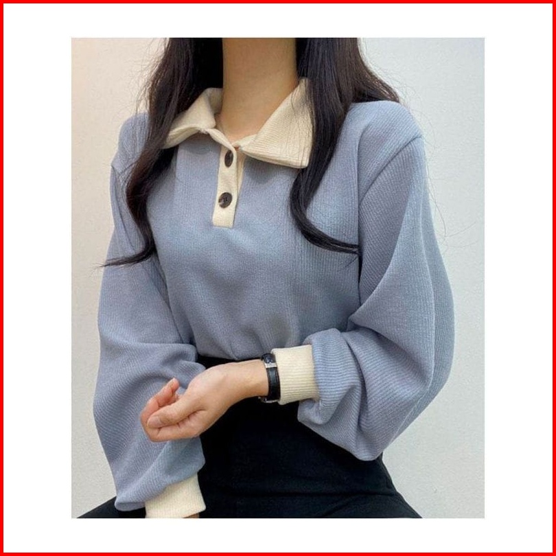 Collar Girl Sweater Oversize Wanita - Sweatshirt Sweater Model Kerah Kancing - Crewneck