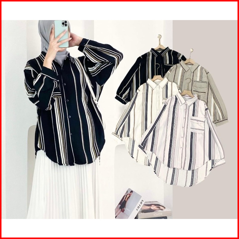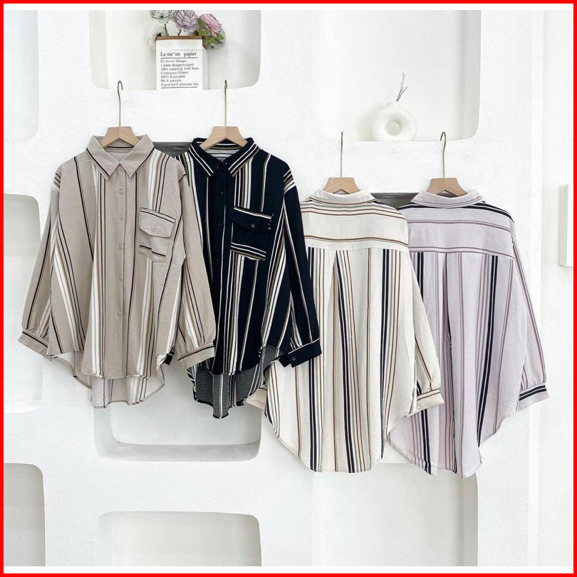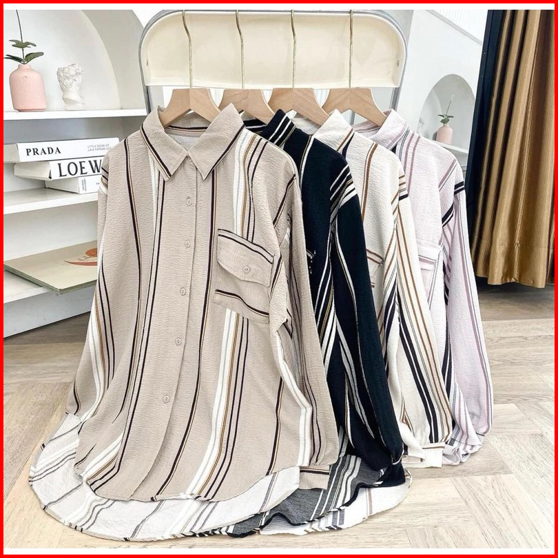 Girlfashionstory Original Vilda Kemeja Oversize Pocket Kantong