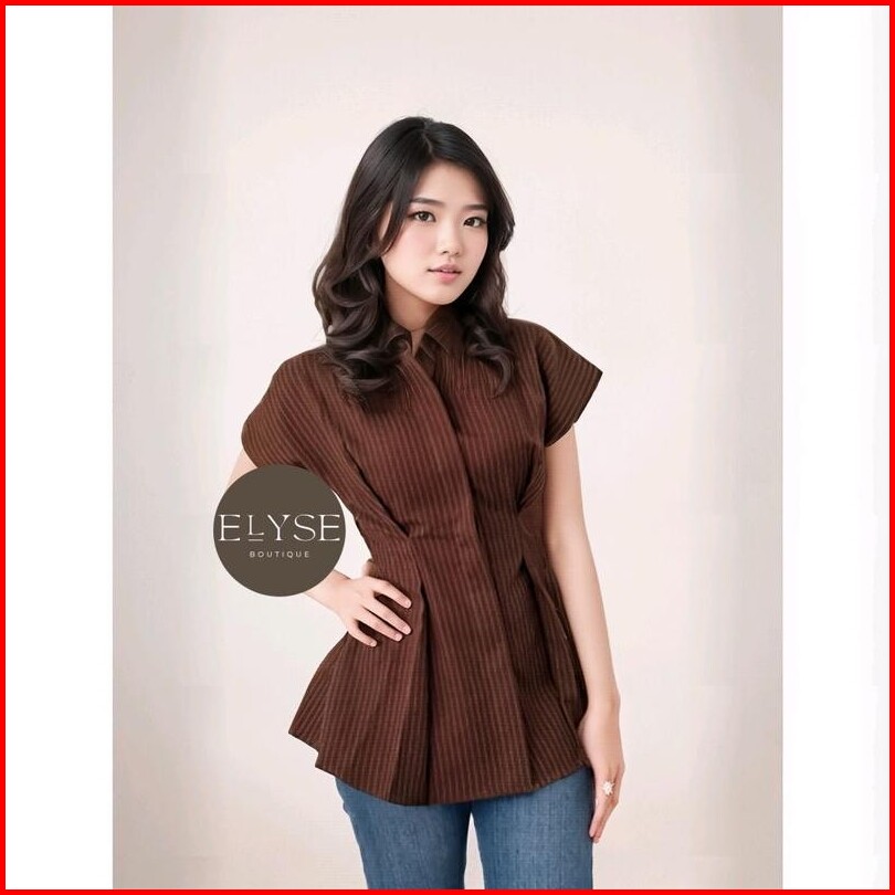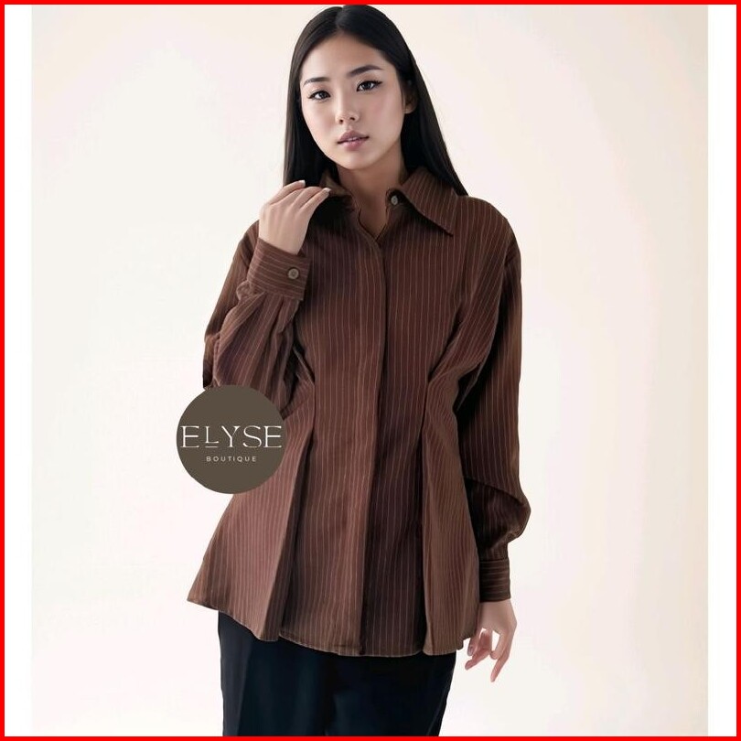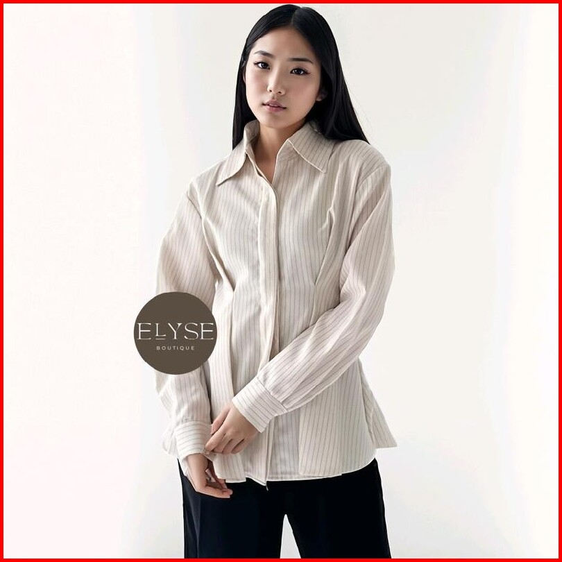 Elyse - Arba Top Kemeja Fitted Kemeja Kerja Wanita Blus Garis Garis Lengan Panjang Dan Pendek Atasan Motif Casual Tangan