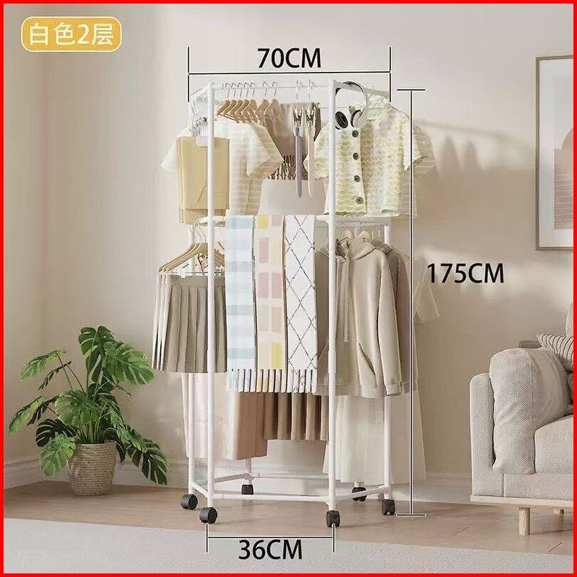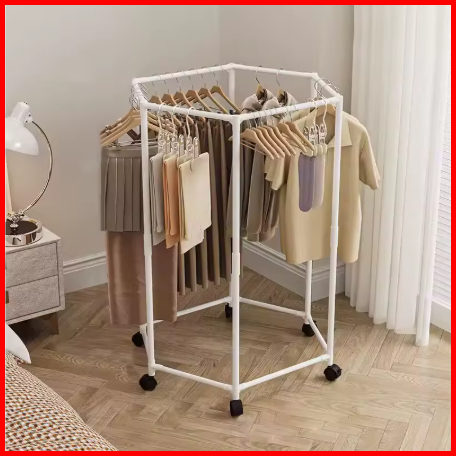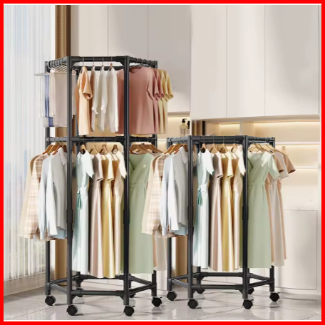 Rak Gantungan Baju Serbaguna Stand Cloth Hanger 2 Gawang 360 Stand Hanger Dengan 6 Roda Rak Gantung Baju Besi Putar Jemu
