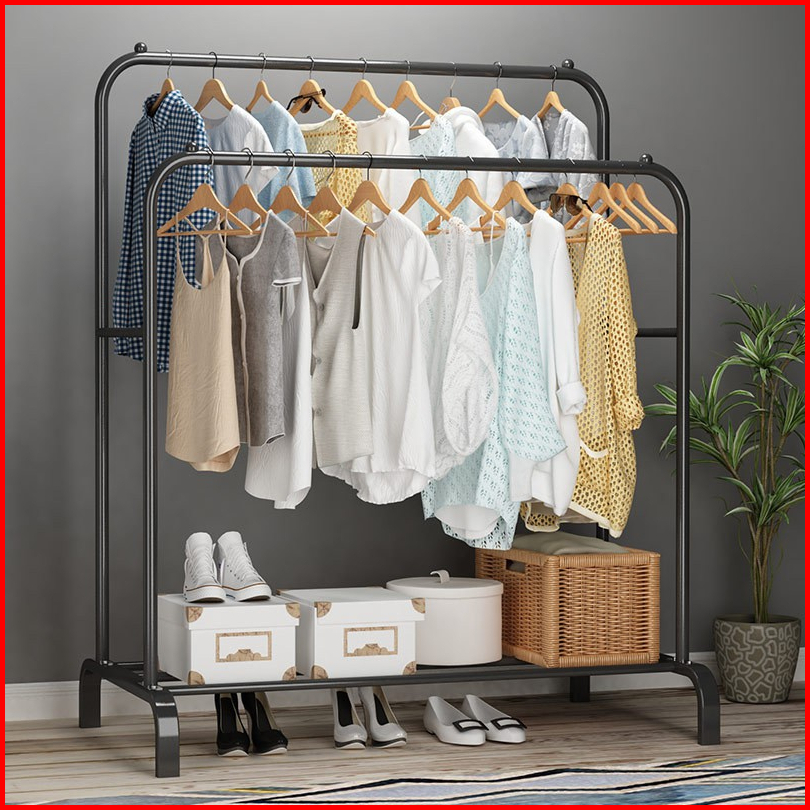 Rak Gantung Aesthetic Stand Hanger Stand Hanger Double Gantungan Pakaian Serbaguna -wonderdekorasi