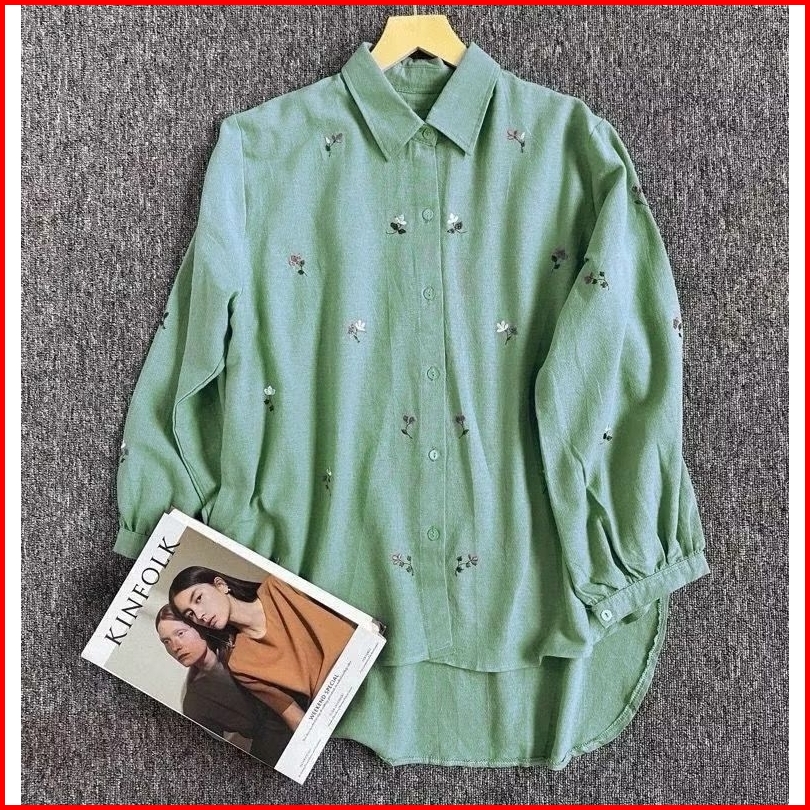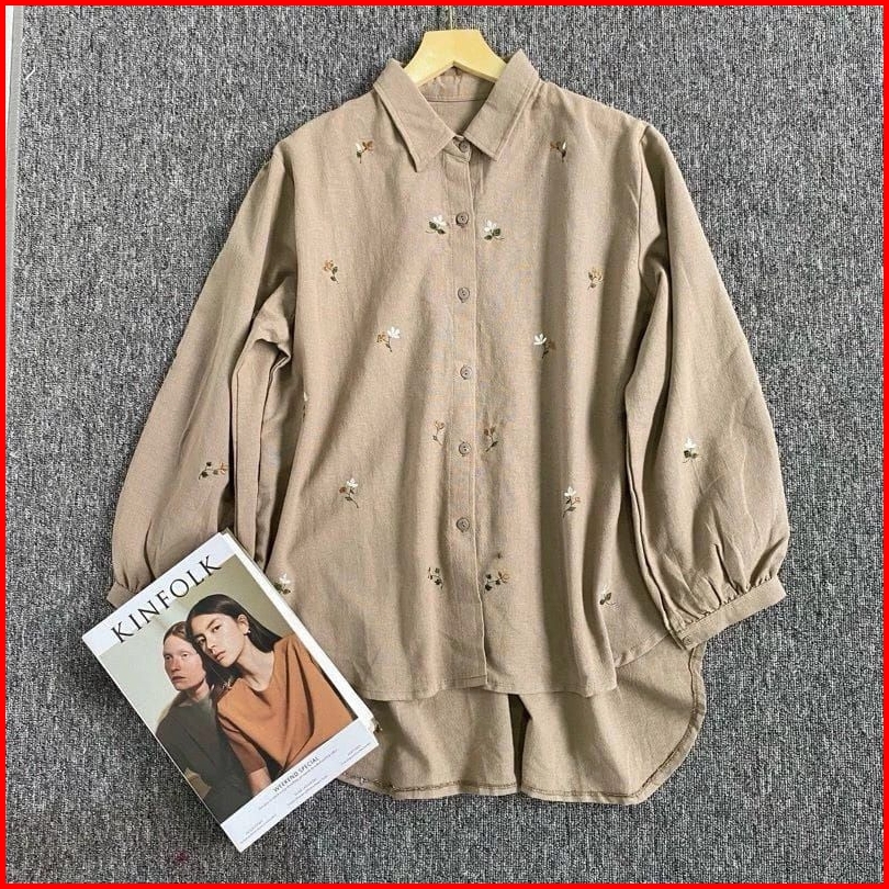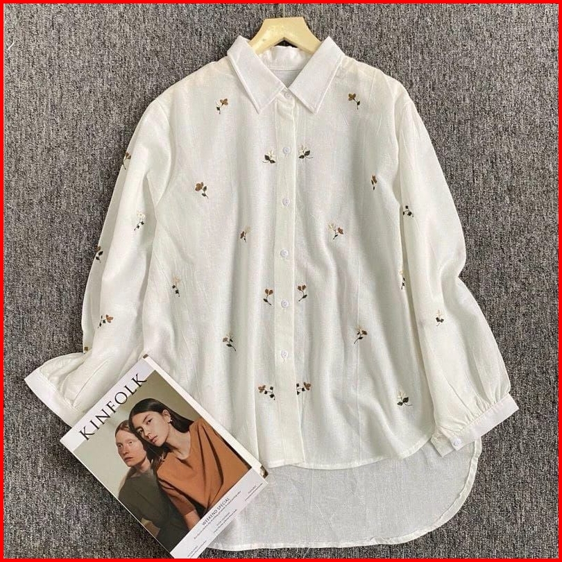 Kemeja Kekinian Luna Motif Bordir Kemeja Polo Linen Motif Bordir Kekinian Blouse Korean Kekinian