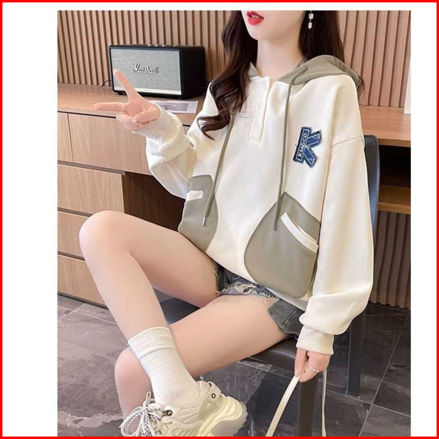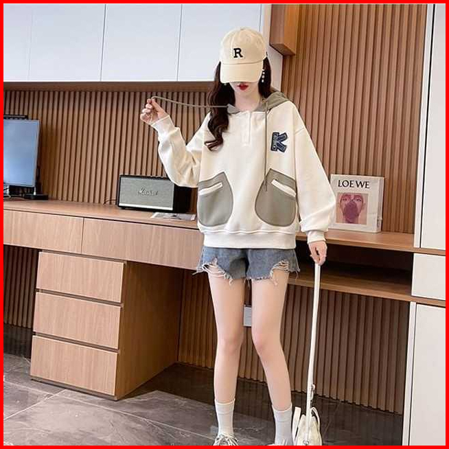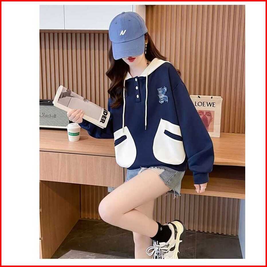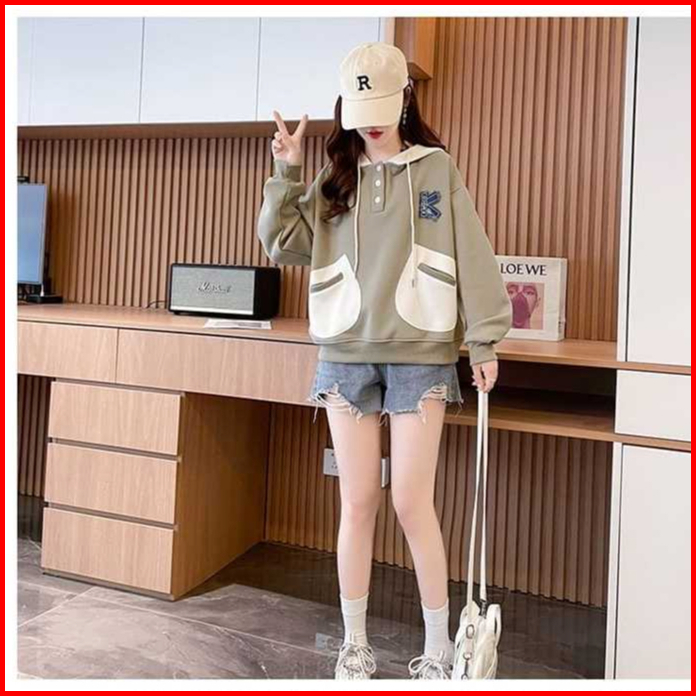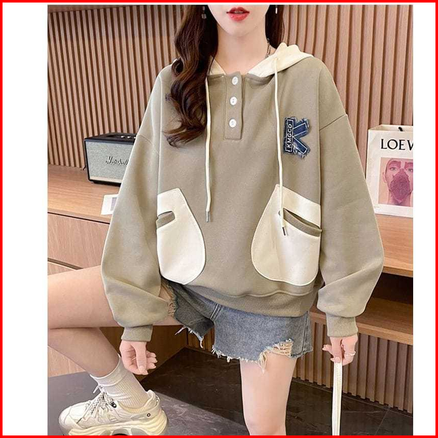 Pocket K Bordir Sweater Hoodie Wanita Oversize - Sweater Wanita Korean Style